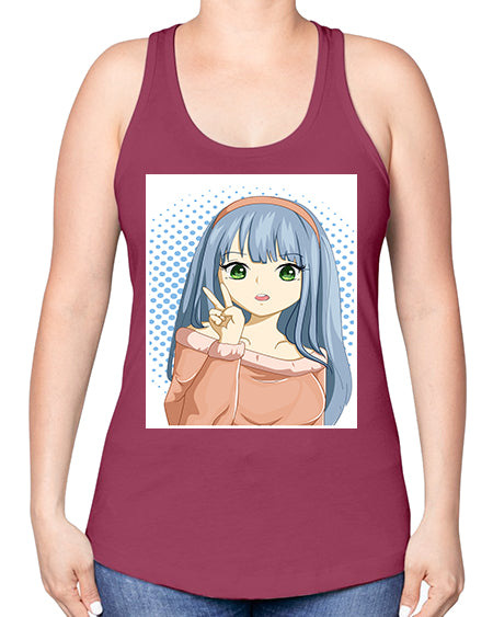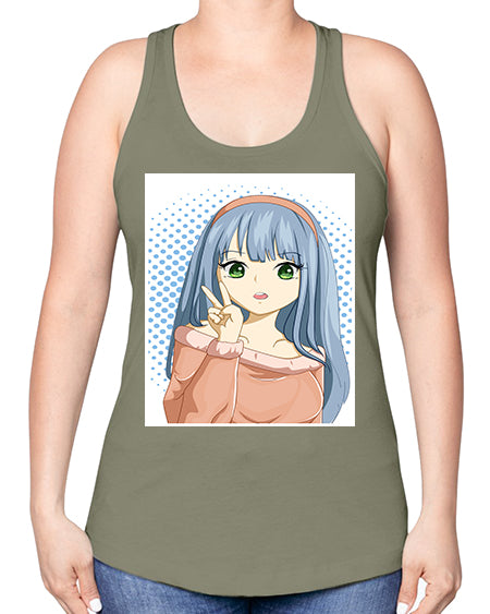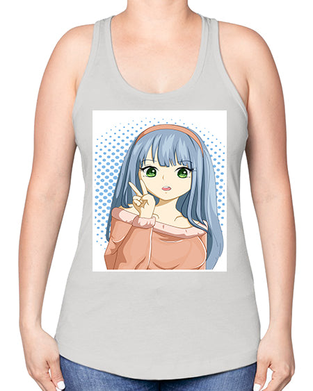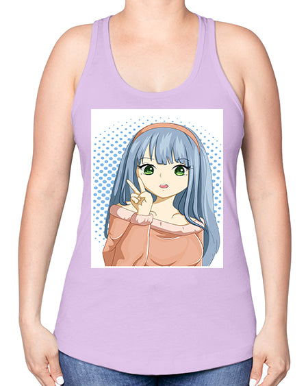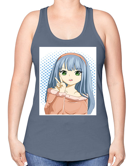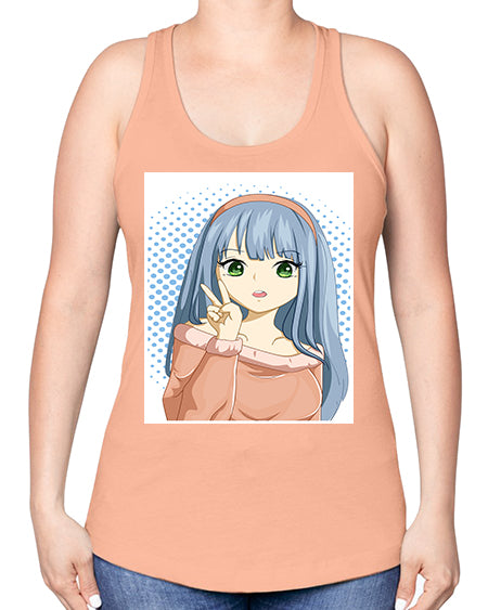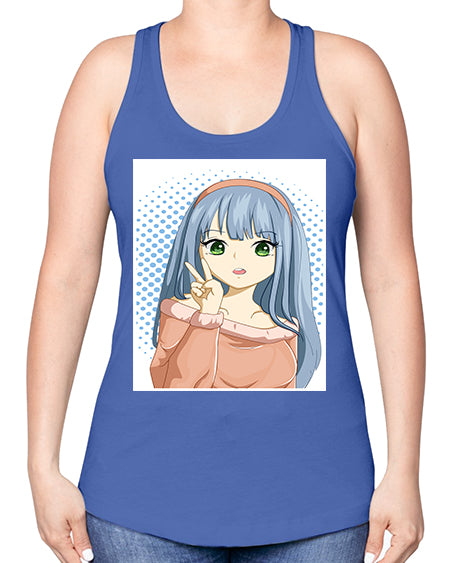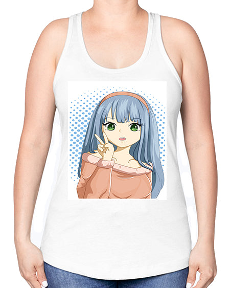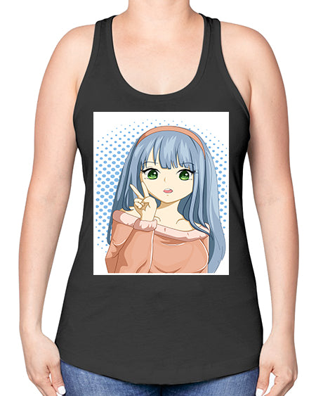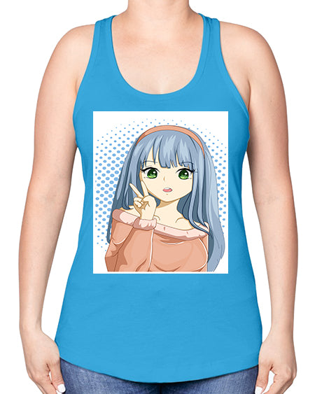 Cute and beautiful girl long blue hair 183#- Sub -Racerback Tank