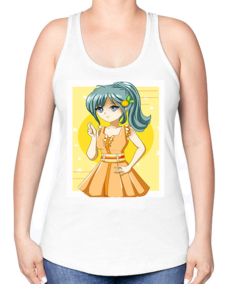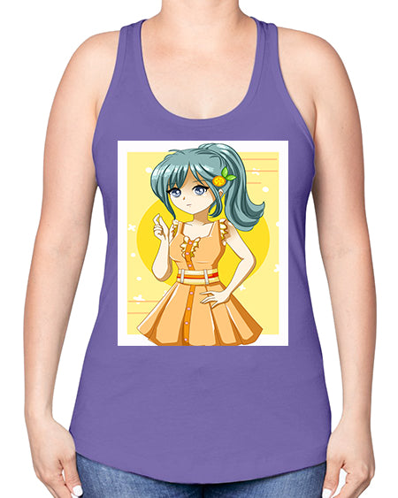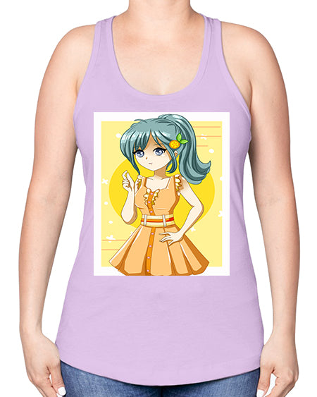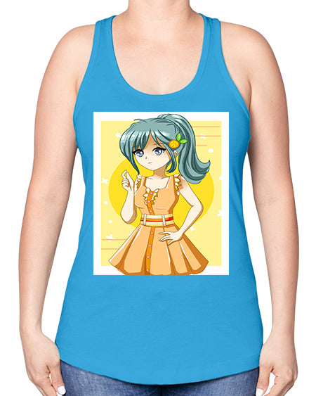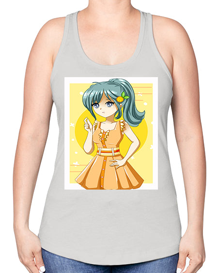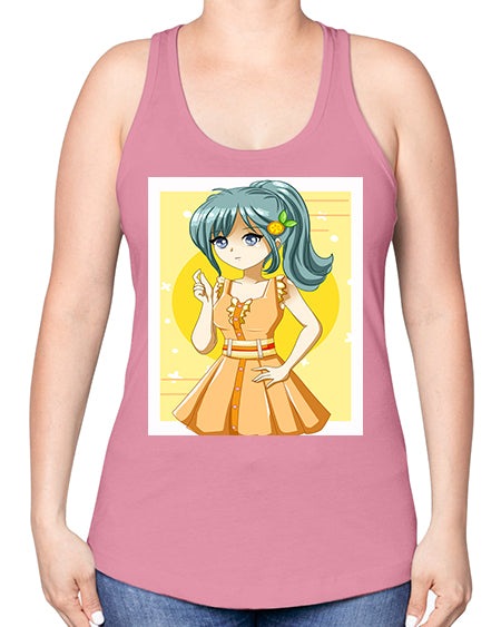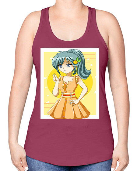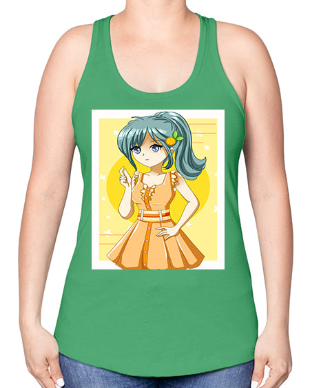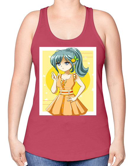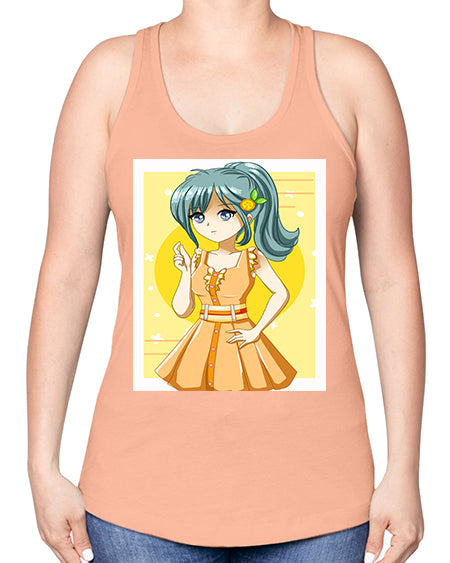 Cute and beautiful orange theme girl in summer 45# - anime -Racerback Tank