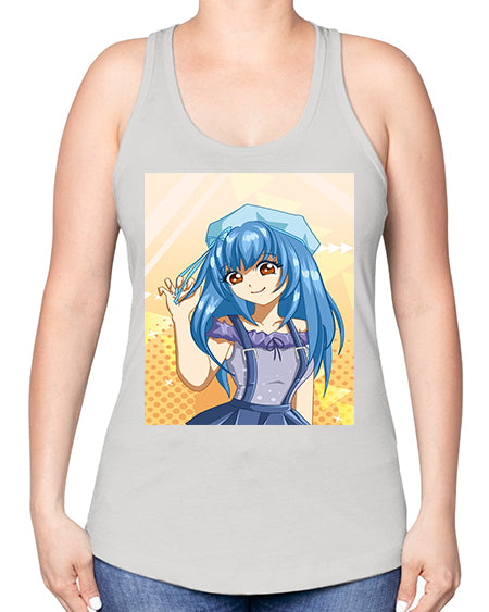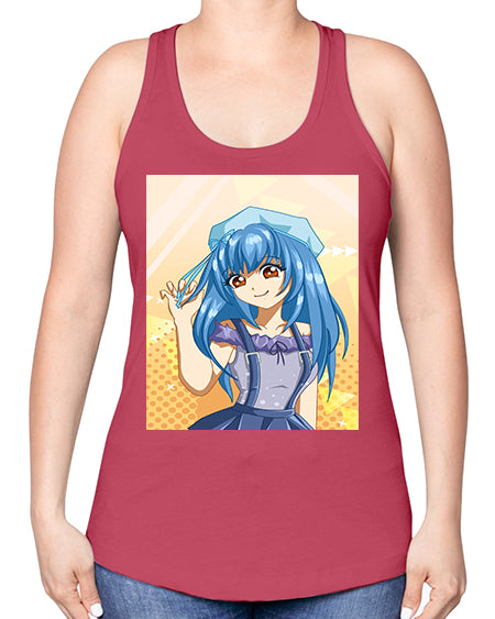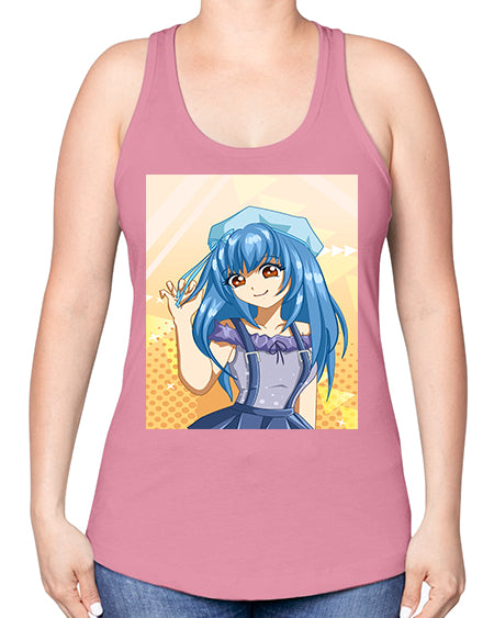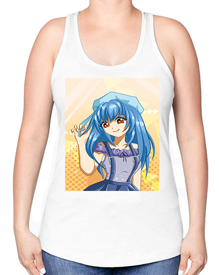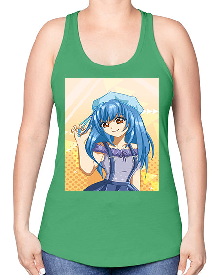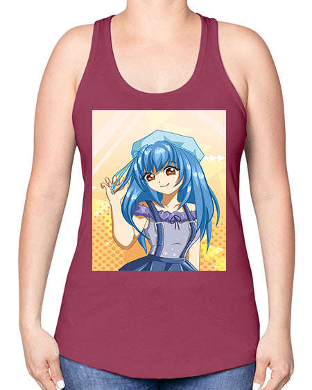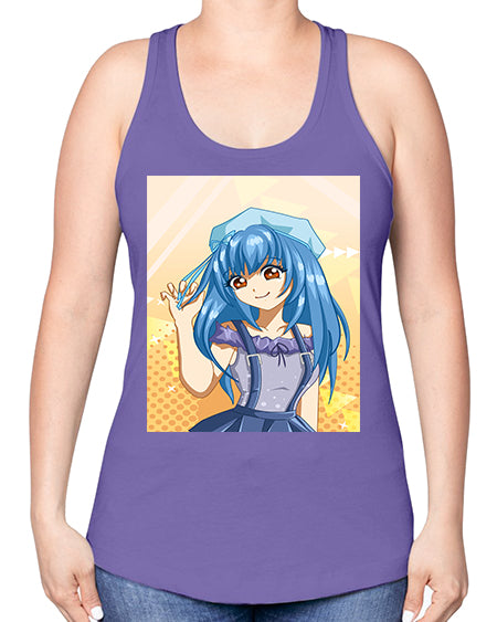 Cute and funny girl with blue hair in purple dress 83# - anime -Racerback Tank