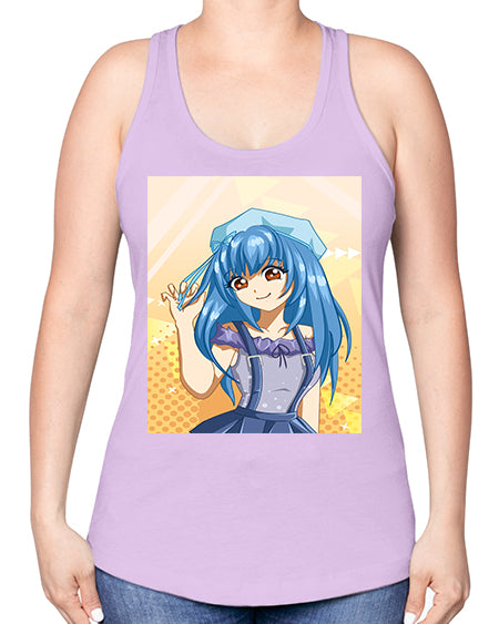 • Cute and funny girl with blue hair in purple dress 83#- Sub -Racerback Tank