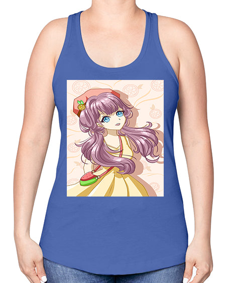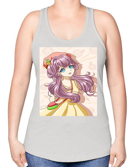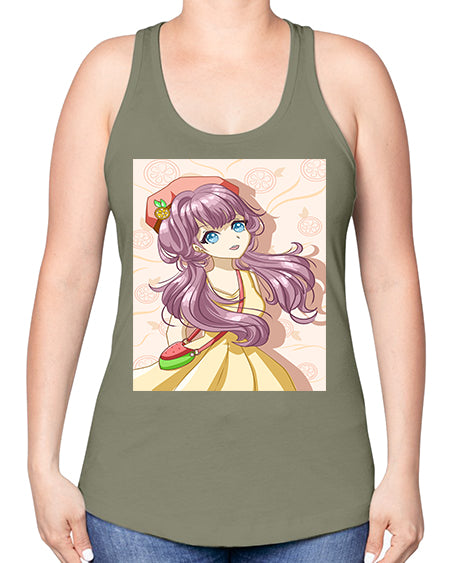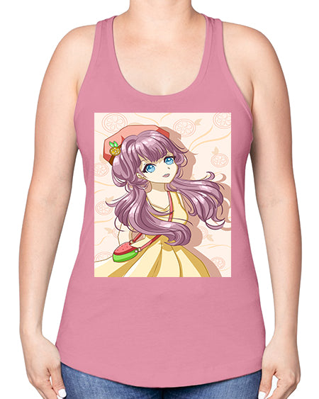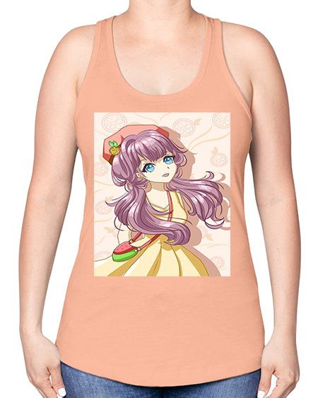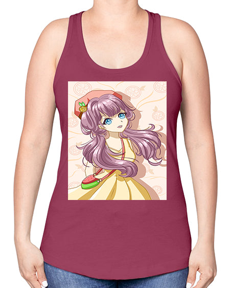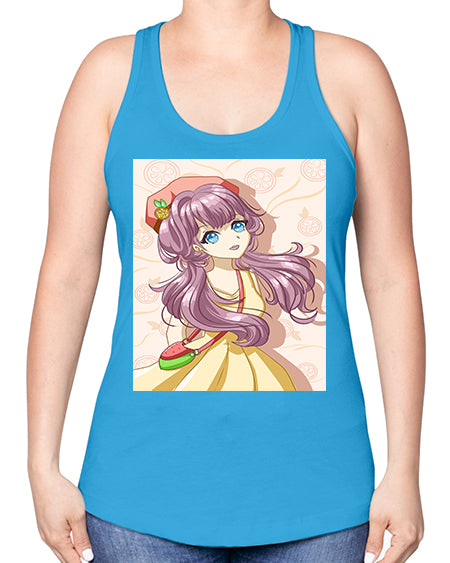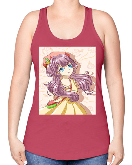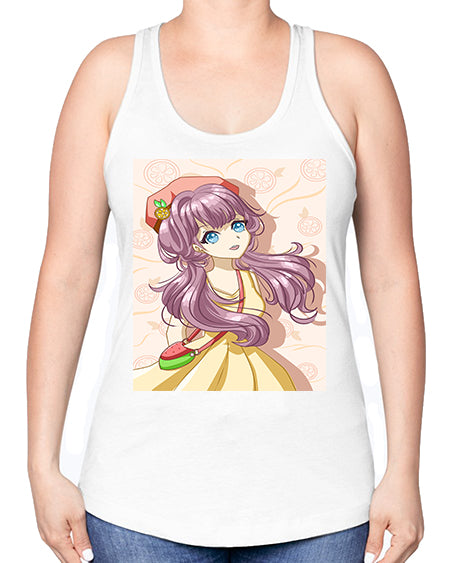 Cute and happy girl in summertime with fruit theme 33# - anime -Racerback Tank