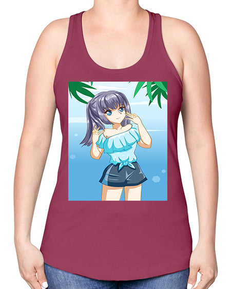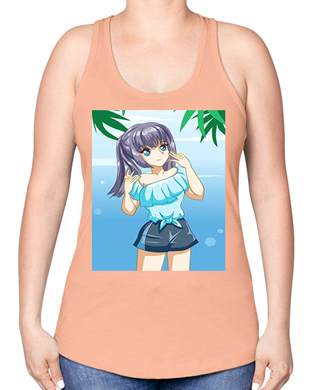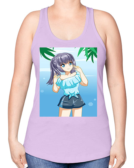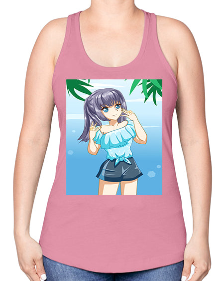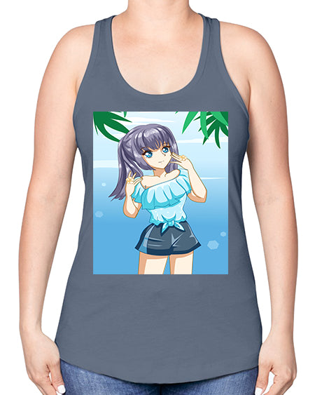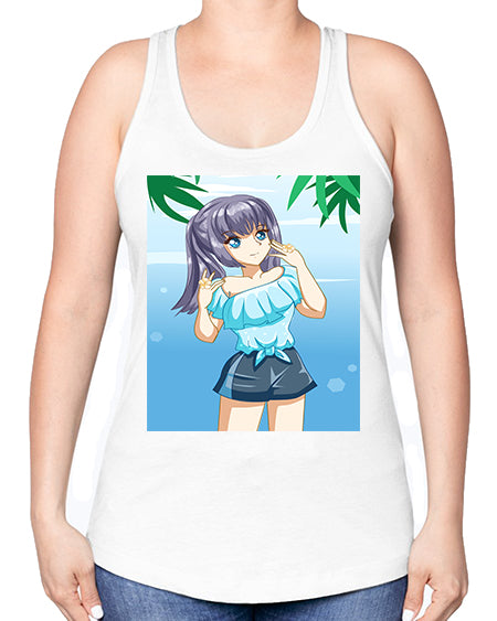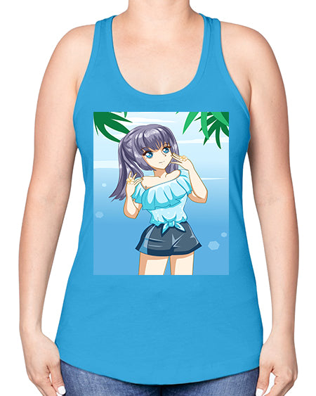 Cute and happy girl with blue shirt in summer 125# - anime -Racerback Tank