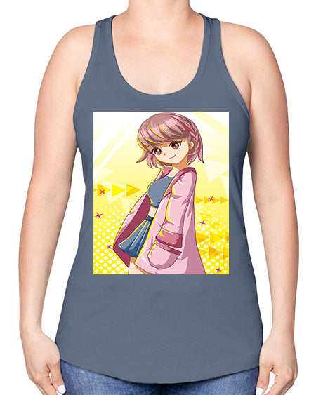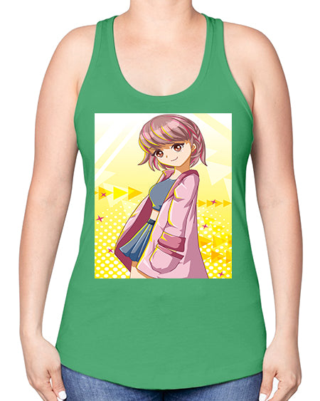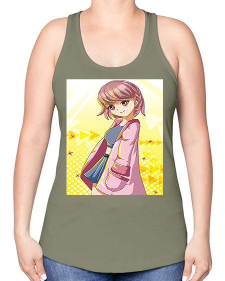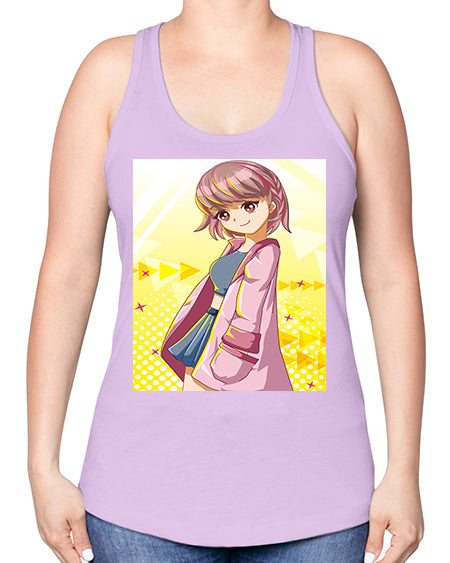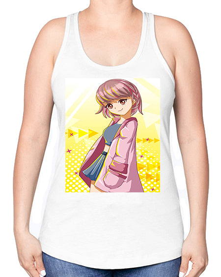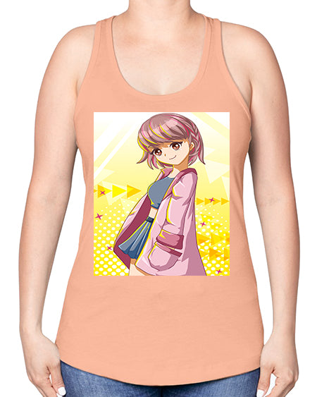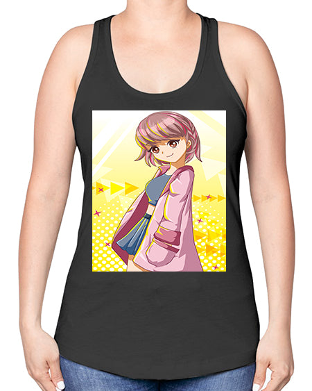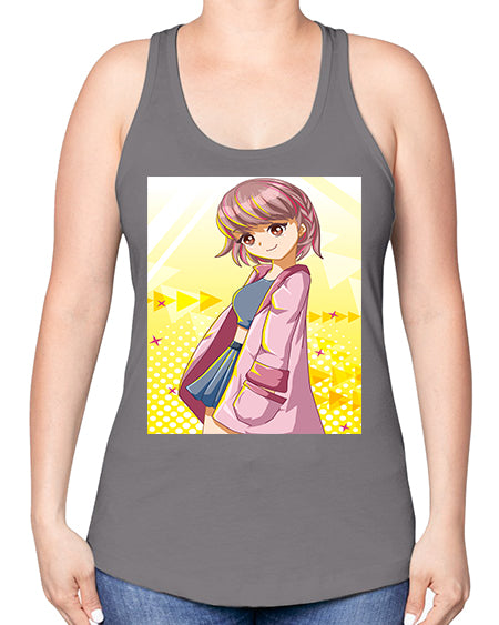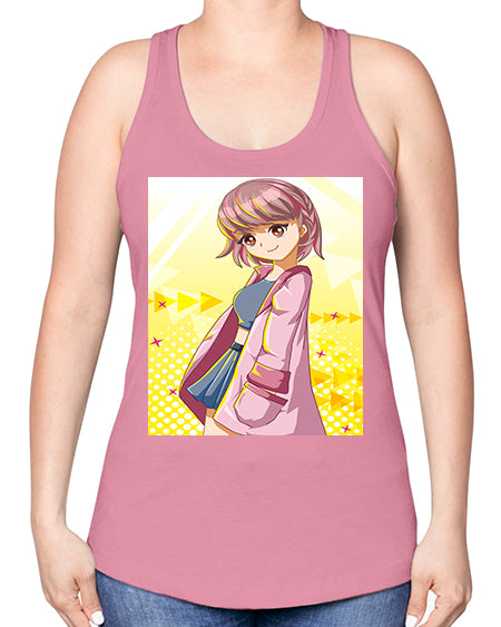 Cute and happy girl with pink coat 111# - anime -Racerback Tank