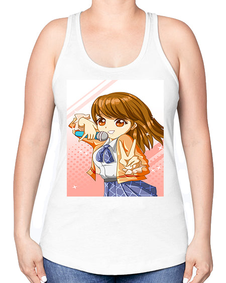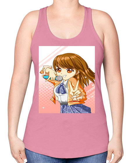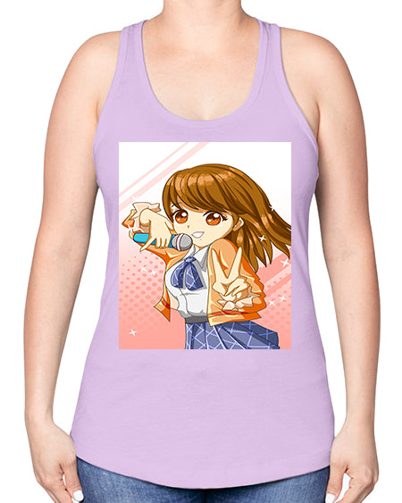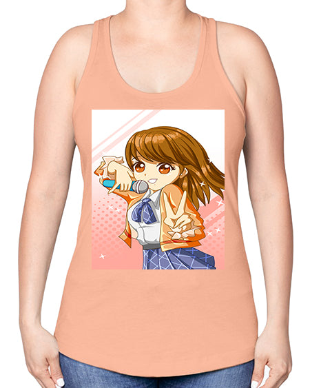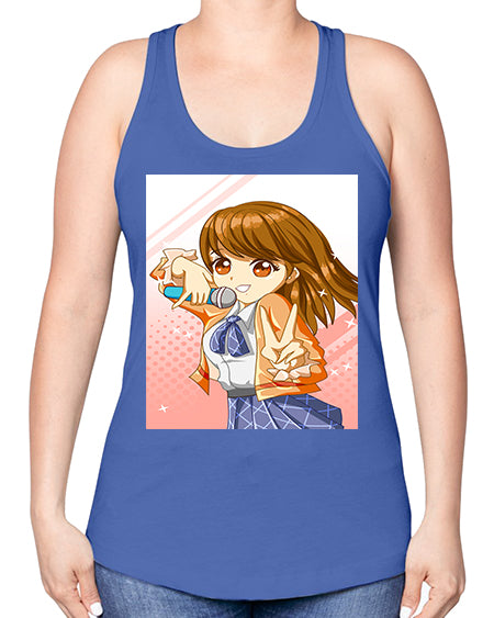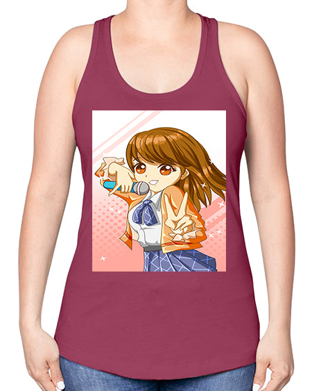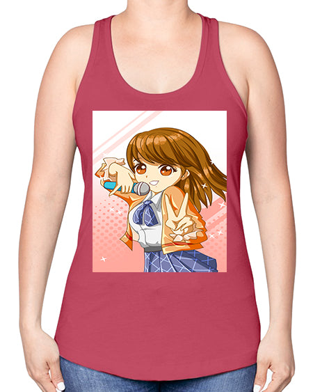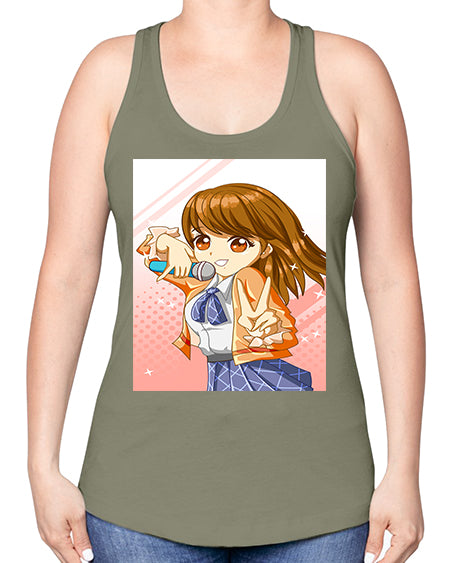 Cute teenage student girl singing song 47# - anime -Racerback Tank