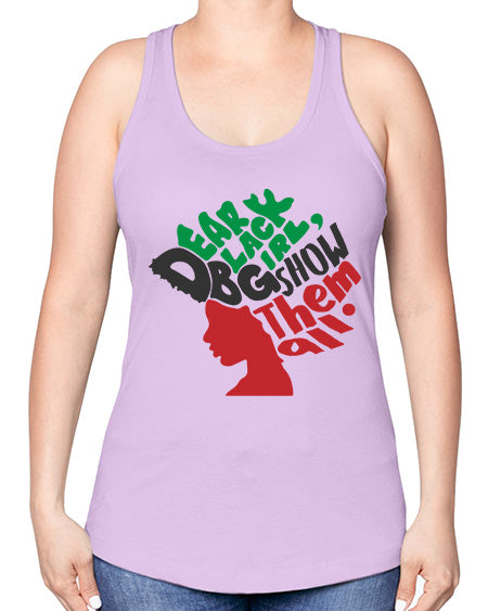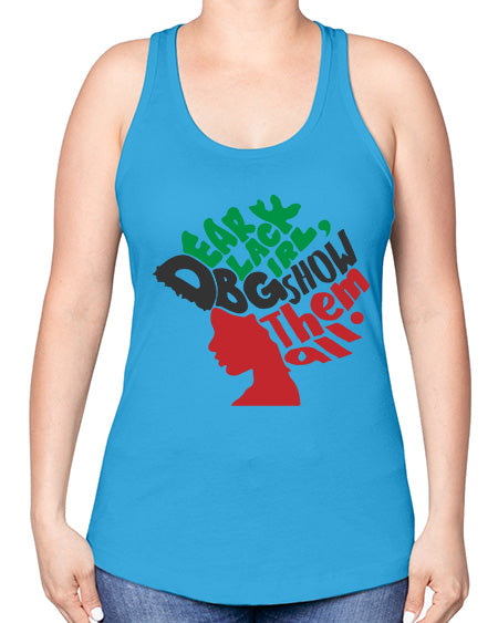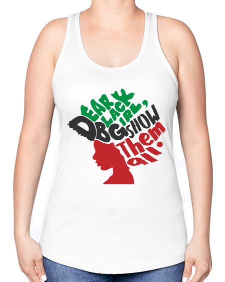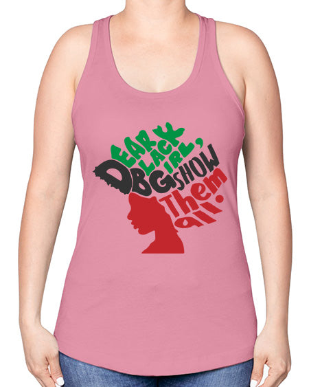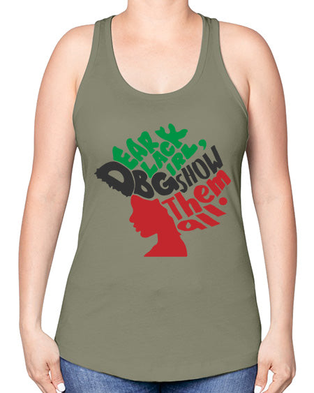 dear black girl show them all color 175# - black words and phrases -Racerback Tank