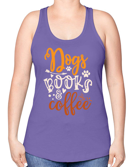 dogs books coffee 130#- dogs -Racerback Tank Note: There is a 2 - 4 day creation time, which may delay shipping. Features: - 60% combed ringspun cotton/40% polyester lightweight jersey