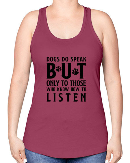 dogs do speak but only to those who know how to listen 131# - dogs -Racerback Tank