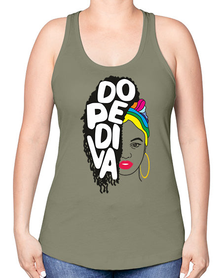 dope diva 5#- Sub -Racerback Tank Note: There is a 2 - 4 day creation time, which may delay shipping. Features: - 60% combed ringspun cotton/40% polyester lightweight jersey