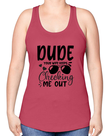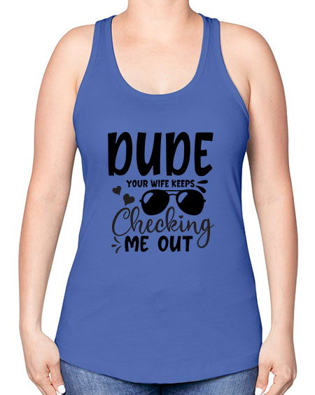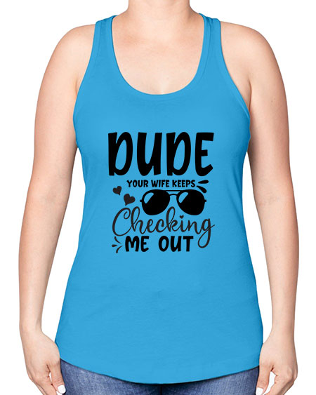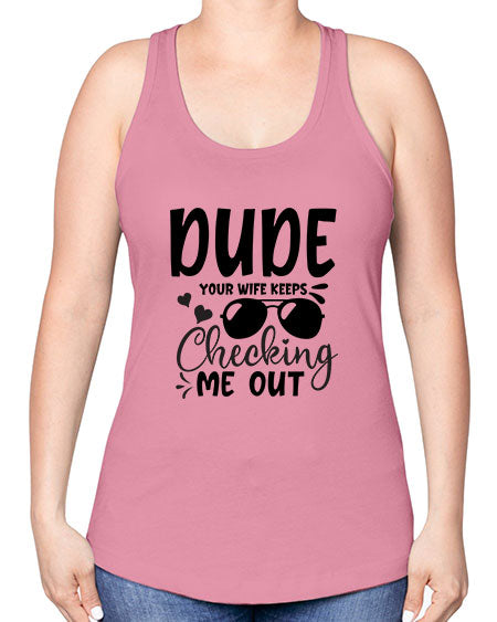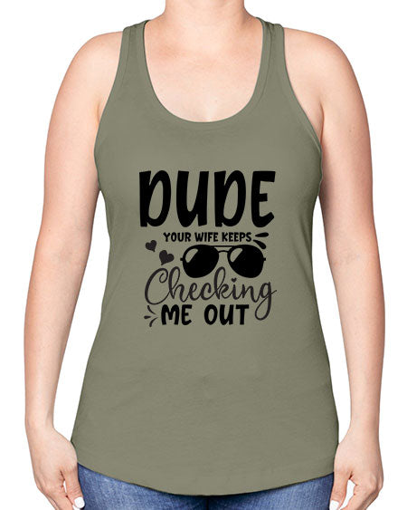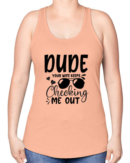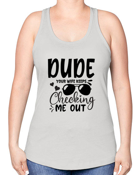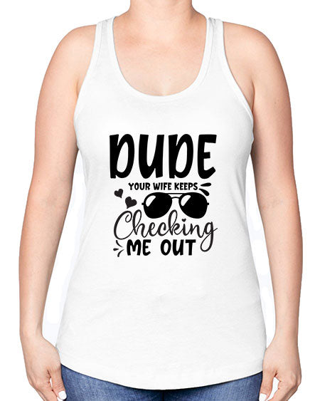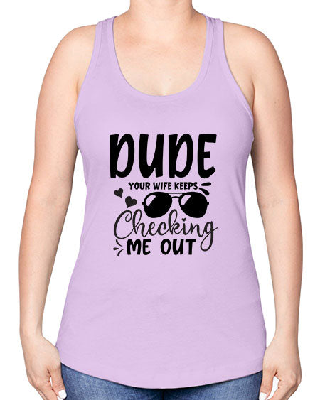 dude your wife keeps cheeking me out Style 72#- babies -Racerback Tank