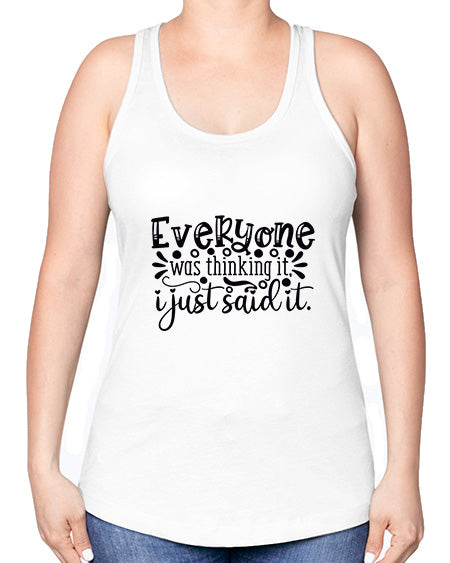 everyone was thinking iti just said it 17#- graphic -Racerback Tank