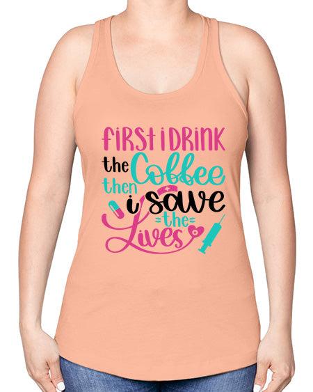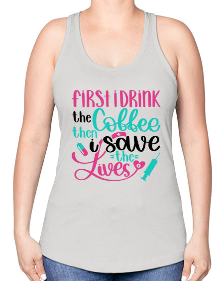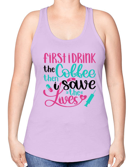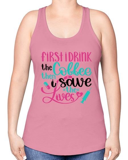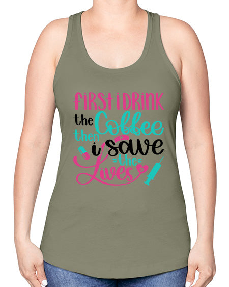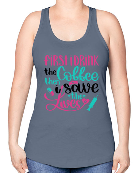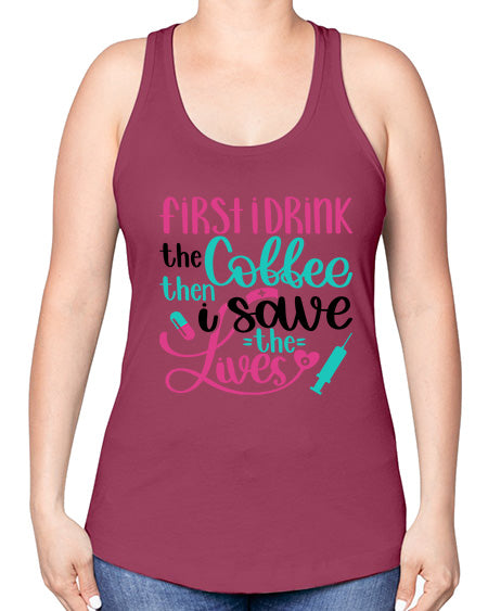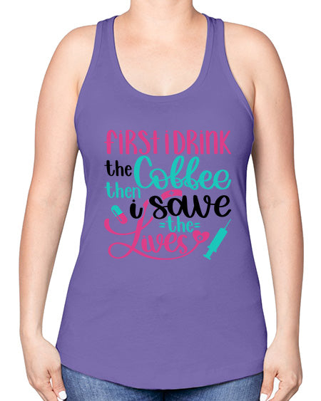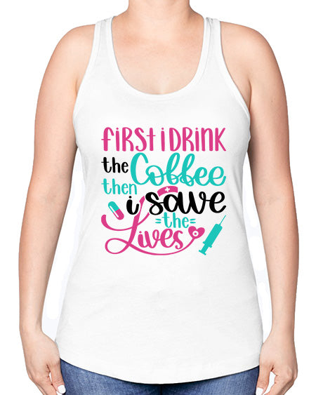 First I Drink The Coffe Style Style 798#- nurse -Racerback Tank
