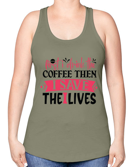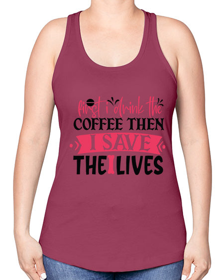 first i drink the coffee then i save the lives Style 801#- nurse -Racerback Tank