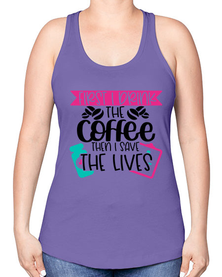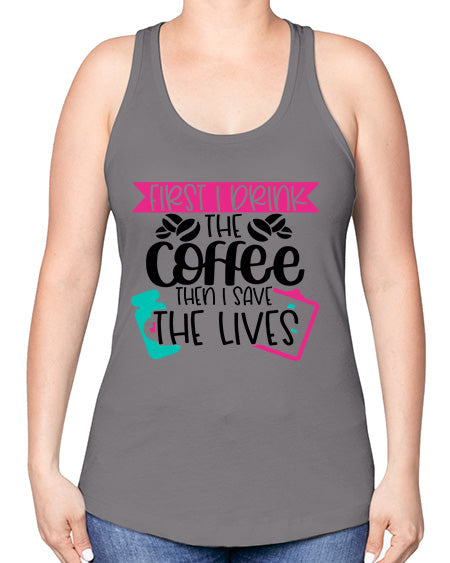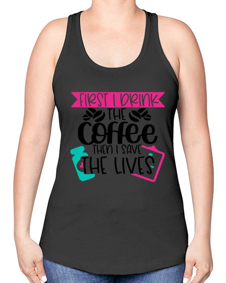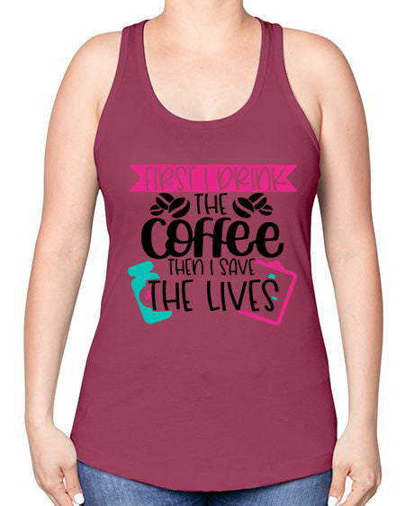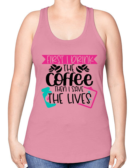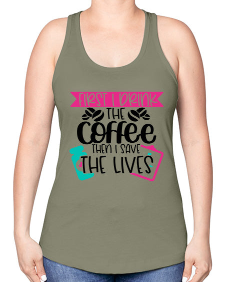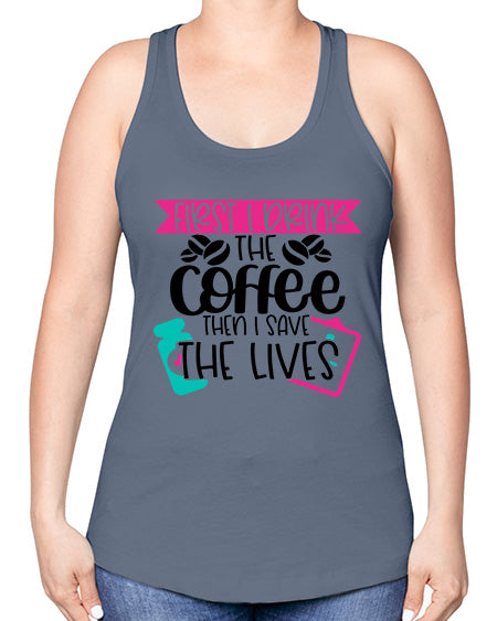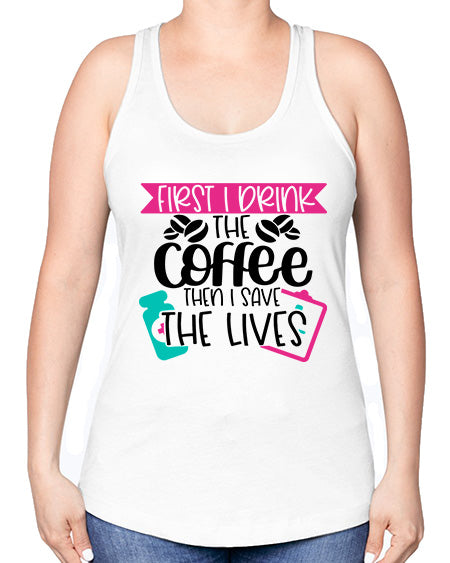 First I Drink The Coffee Then I Save The Lives Style Style 802#- nurse -Racerback Tank