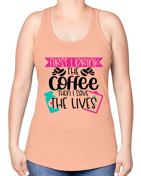 First I Drink The Coffee Then I Save The Lives Style Style 802# - nurse -Racerback Tank
