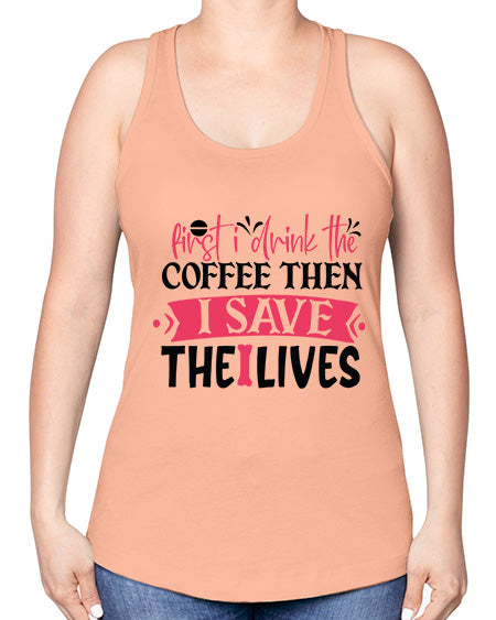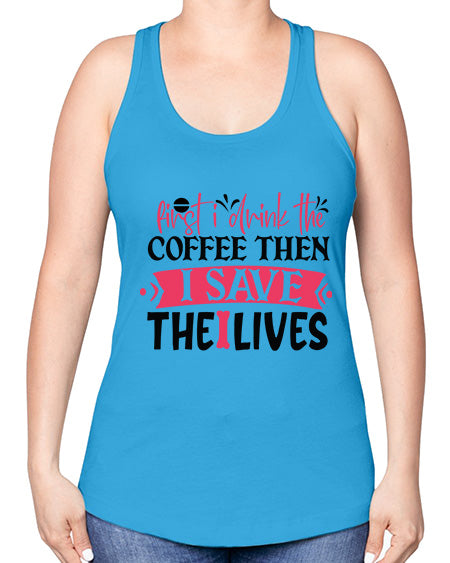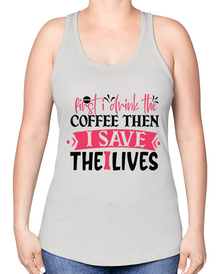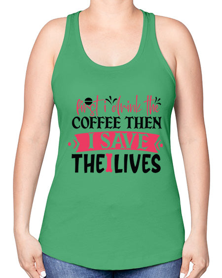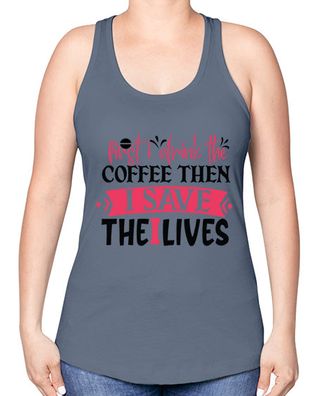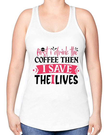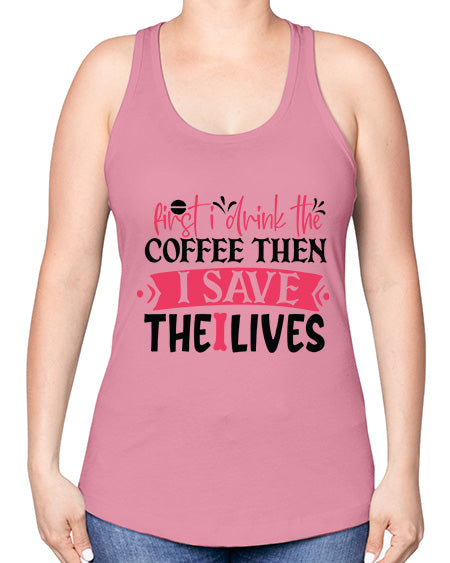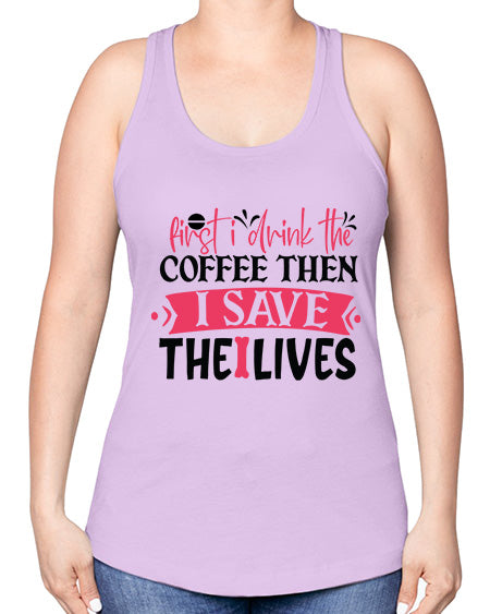 first i drink the coffee then i save the lives Style Style 804# - nurse -Racerback Tank