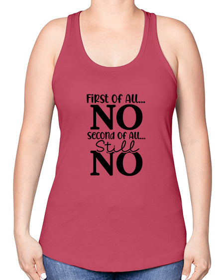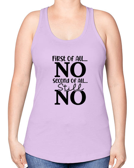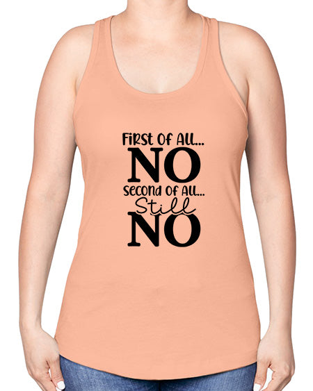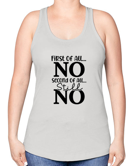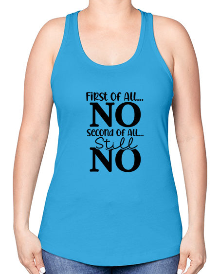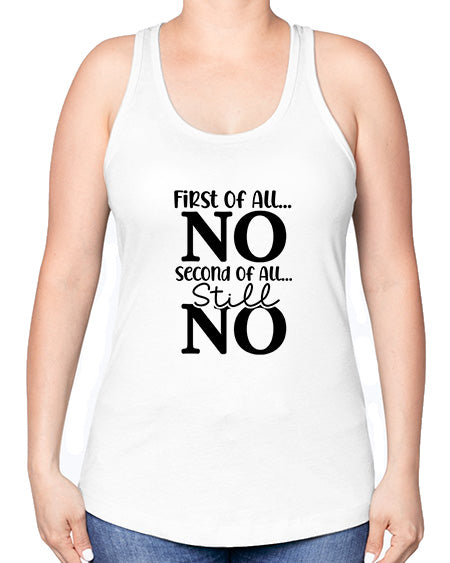 google-site-verification=jVrHOkW2AsgL_ozwUikqFQE6-Ke6U43Z8aLcUbXT5TE First of All No Second of All Still No 454# - funny -Racerback Tank – Tshirt Unlimited