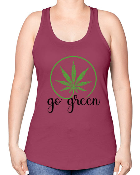google-site-verification=jVrHOkW2AsgL_ozwUikqFQE6-Ke6U43Z8aLcUbXT5TE go green cannabis 484# - marijuana -Racerback Tank – Tshirt Unlimited