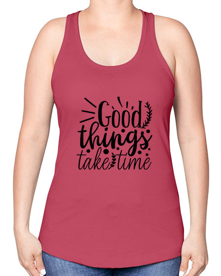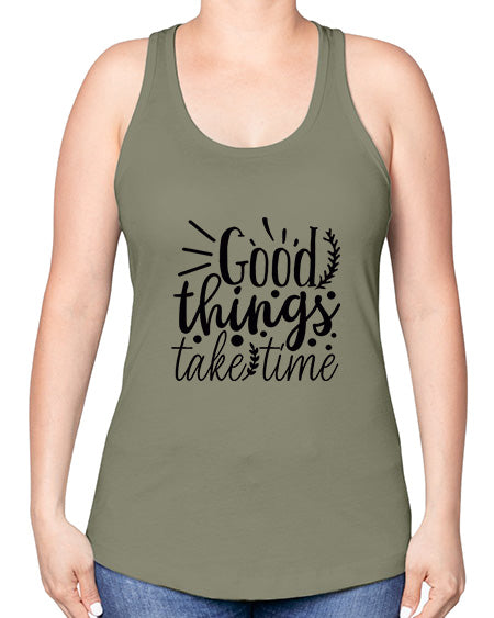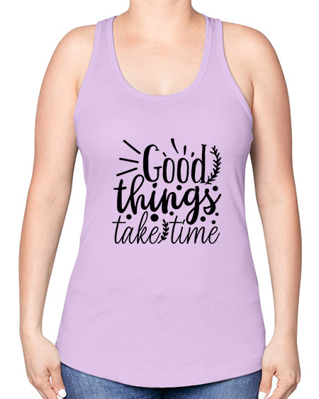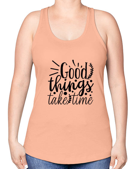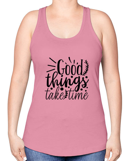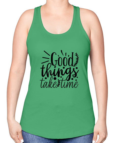 • good things take time 20#- gym -Racerback Tank