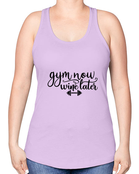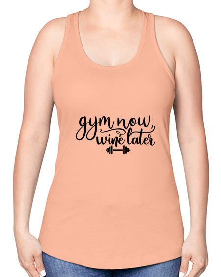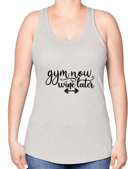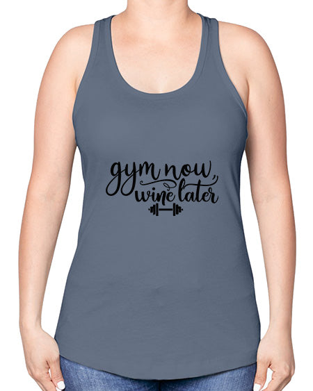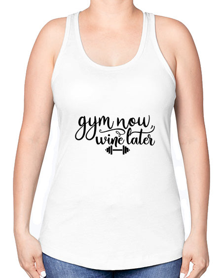 gym now wine later 28#- gym -Racerback Tank