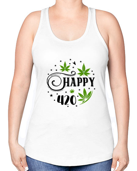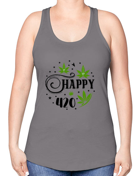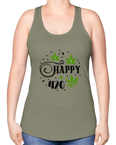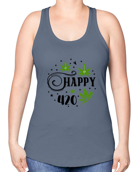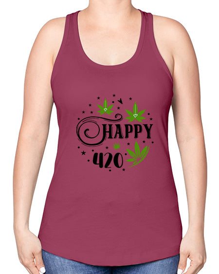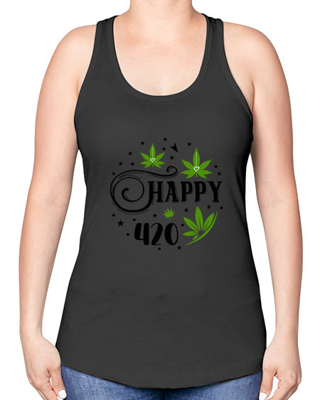 google-site-verification=jVrHOkW2AsgL_ozwUikqFQE6-Ke6U43Z8aLcUbXT5TE Happy 504# - marijuana -Racerback Tank – Tshirt Unlimited