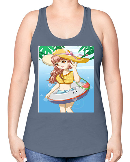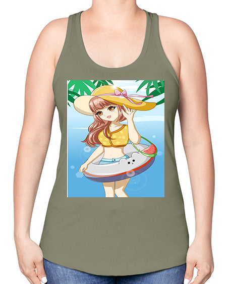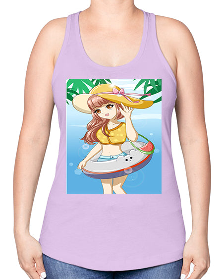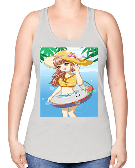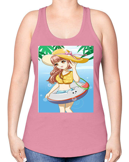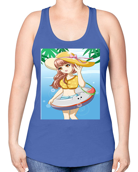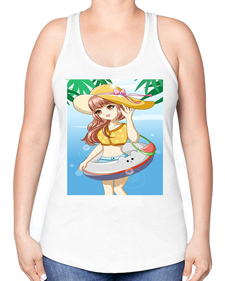 Happy and funny girl in beach with cute buoy in the summer 11# - anime -Racerback Tank