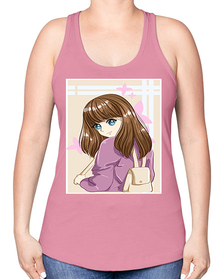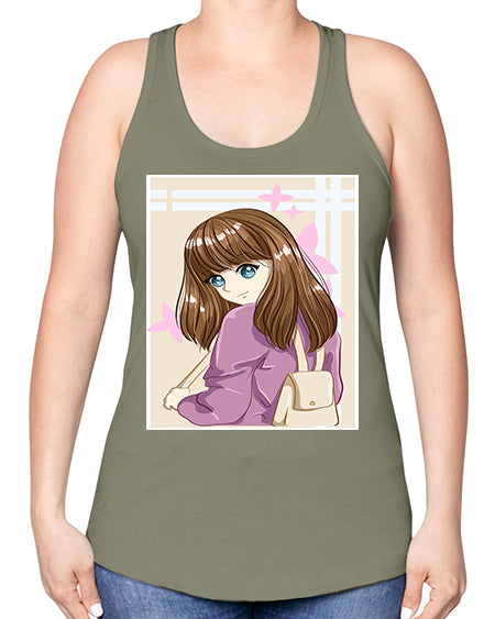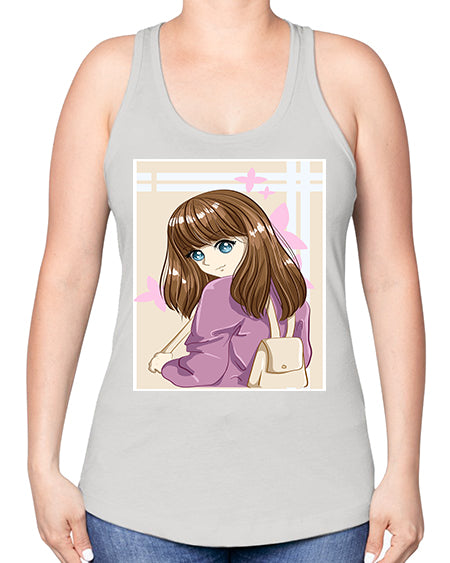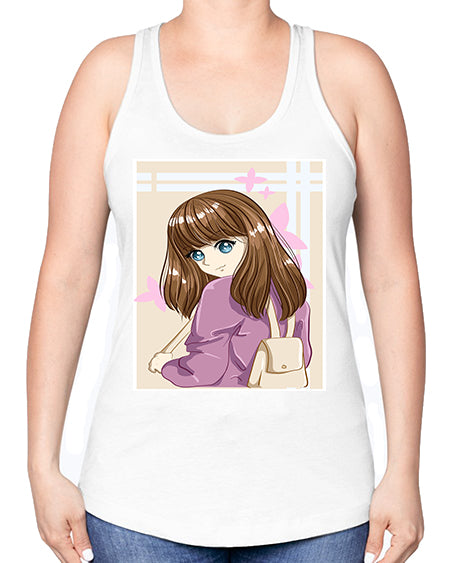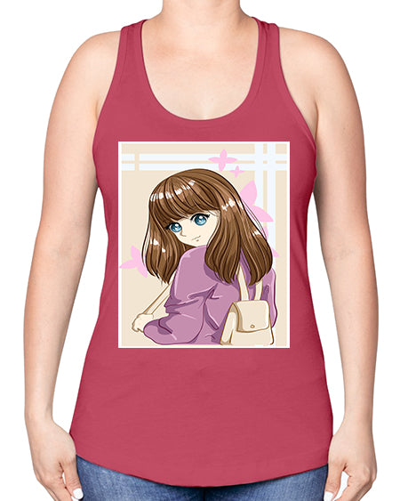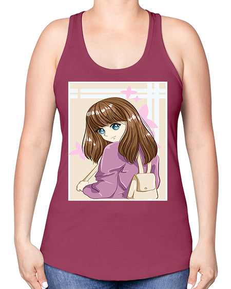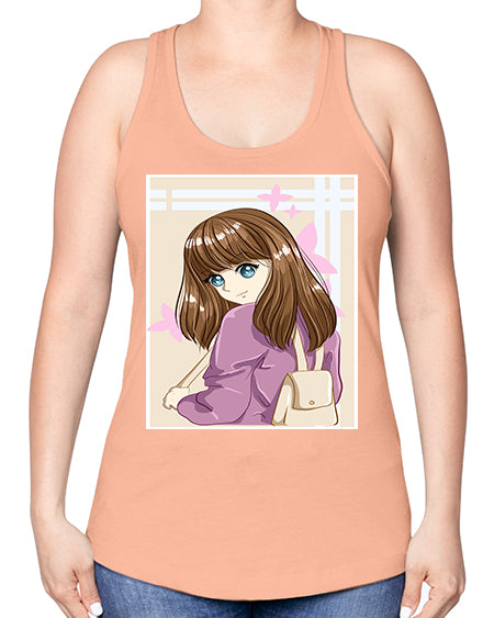 Happy and pretty college student carrying a bag 102# - anime -Racerback Tank