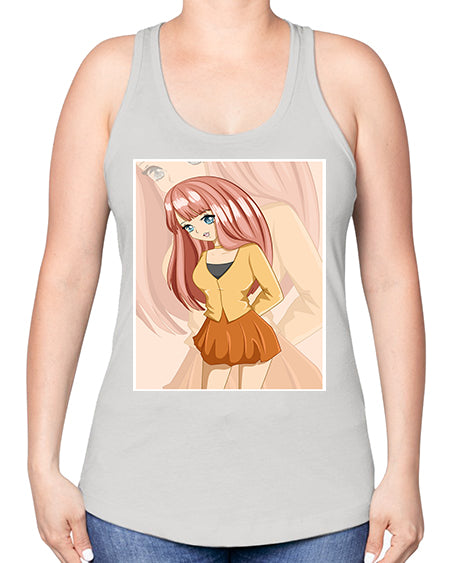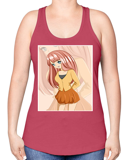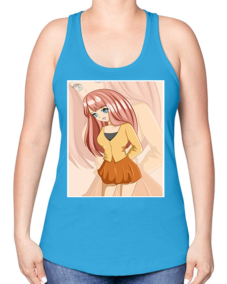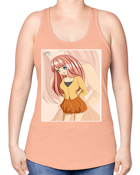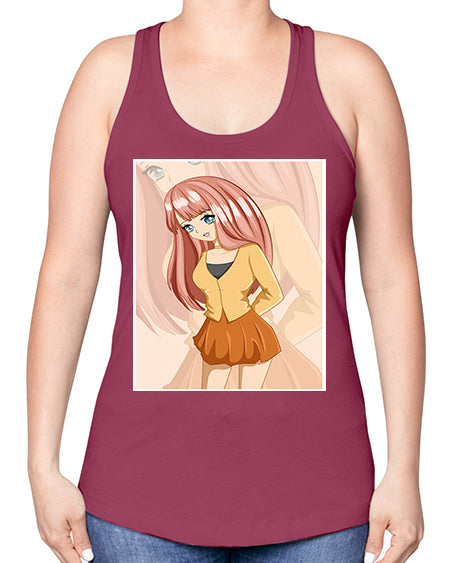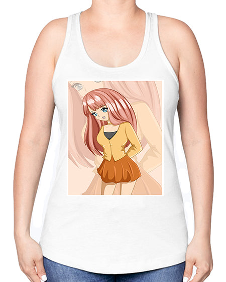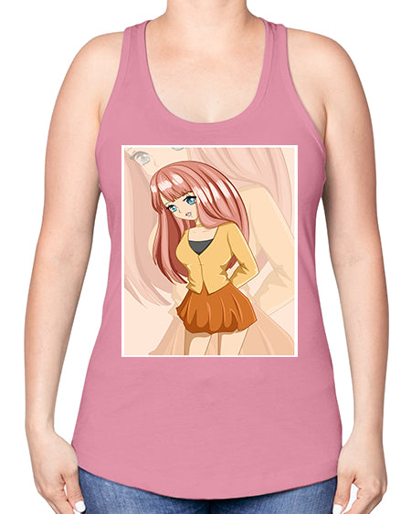 google-site-verification=jVrHOkW2AsgL_ozwUikqFQE6-Ke6U43Z8aLcUbXT5TE Happy beautiful and cute girl pink long hair 5# - anime -Racerback Tan – Tshirt Unlimited