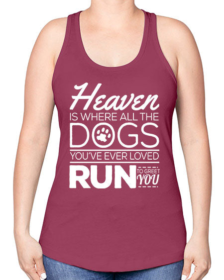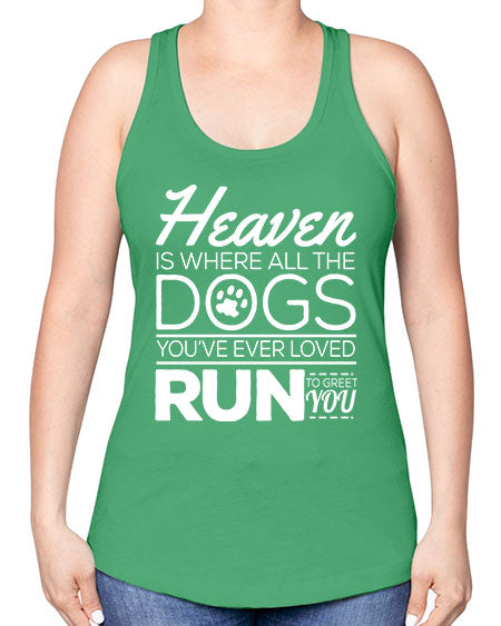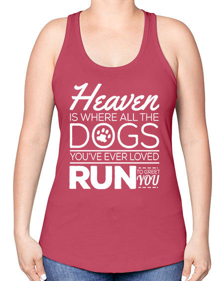 google-site-verification=jVrHOkW2AsgL_ozwUikqFQE6-Ke6U43Z8aLcUbXT5TE heaven is where all dogs greet you - dogs -Racerback Tank – Tshirt Unlimited