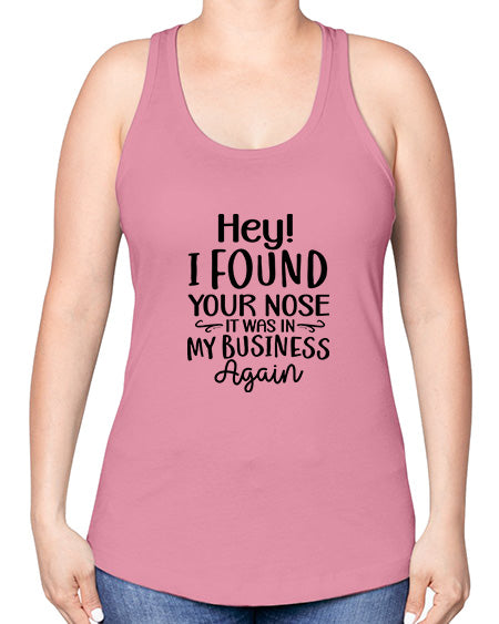 Hey I Found Your Nose It Was In My Business Again 519# - funny -Racerback Tank
