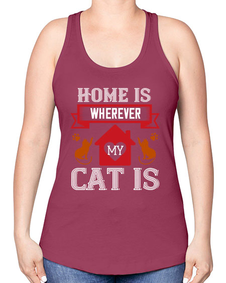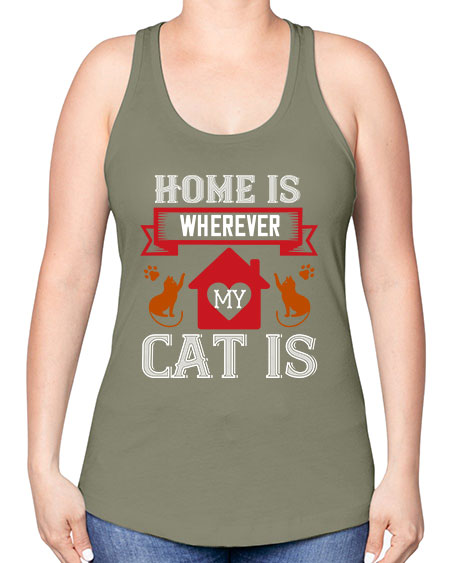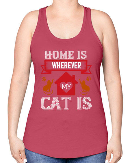 home is wherwever my cat is Style 51#- cats -Racerback Tank