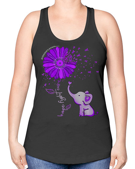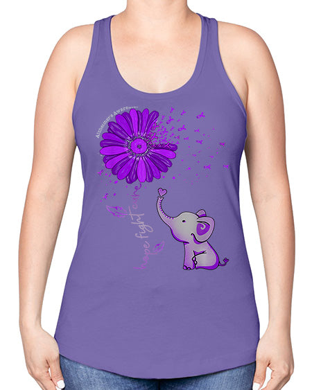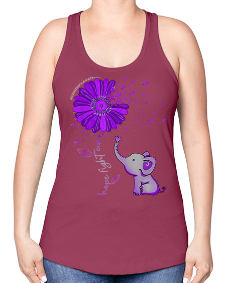 Hope Fight Cure Elephant Alzheimers Purple Ribbon 160#- Sub -Racerback Tank