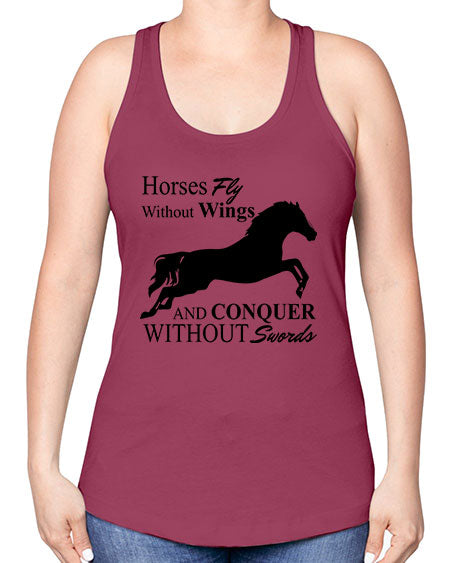 horses fly without wings and conquer without swords- horse -Racerback Tank