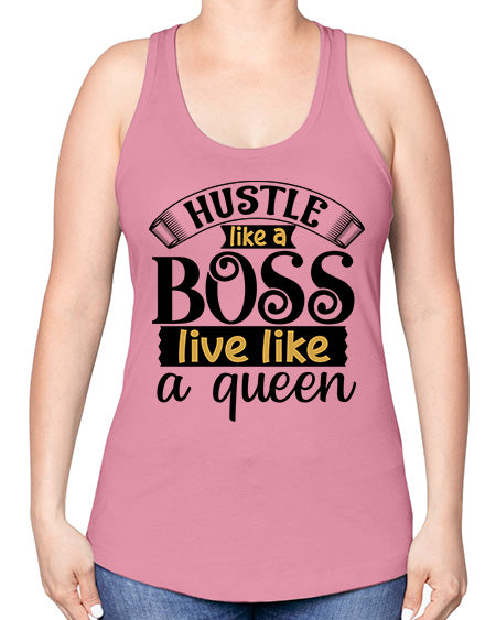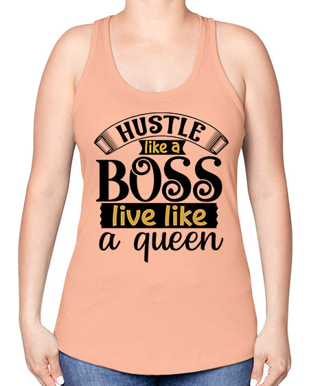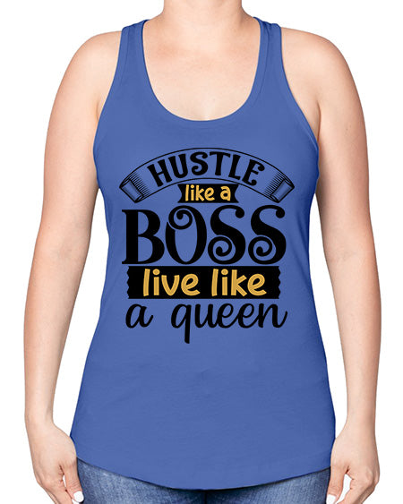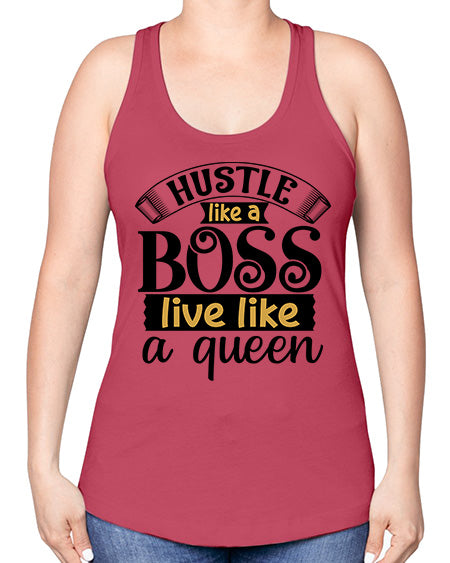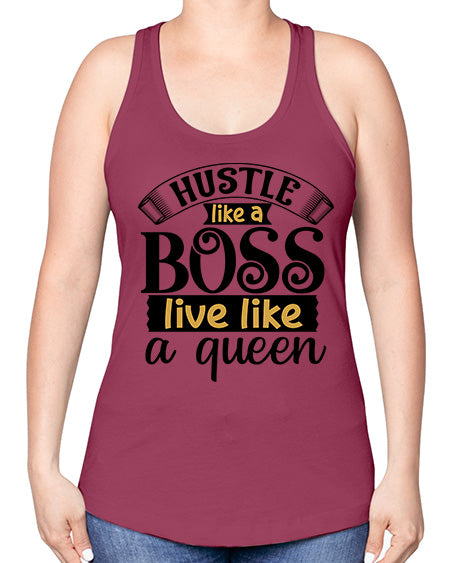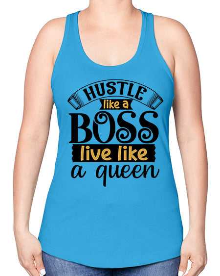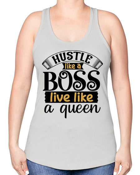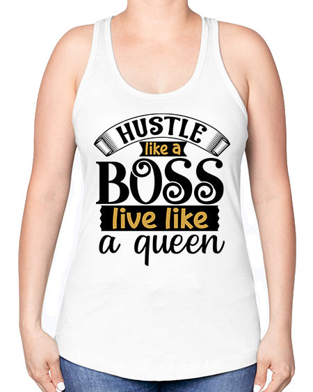 Hustle like a boss live like a queen Style 36#- Sub -Racerback Tank Note: There is a 2 - 4 day creation time, which may delay shipping. Features: - 60% combed ringspun cotton/40% polyester lightweight jersey