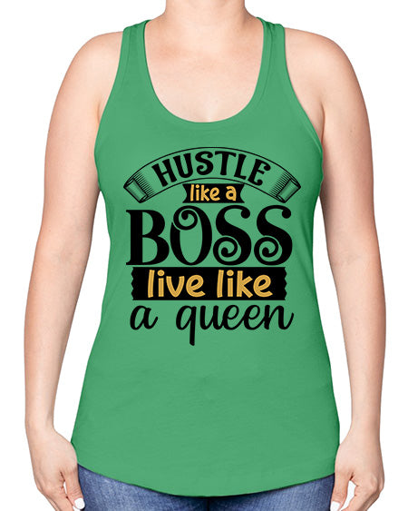 Hustle like a boss live like a queen Style 36# - black girls or women -Racerback Tank