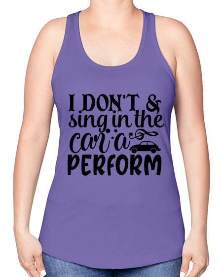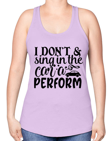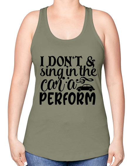i dont sing in the car a perform 32#- graphic -Racerback Tank