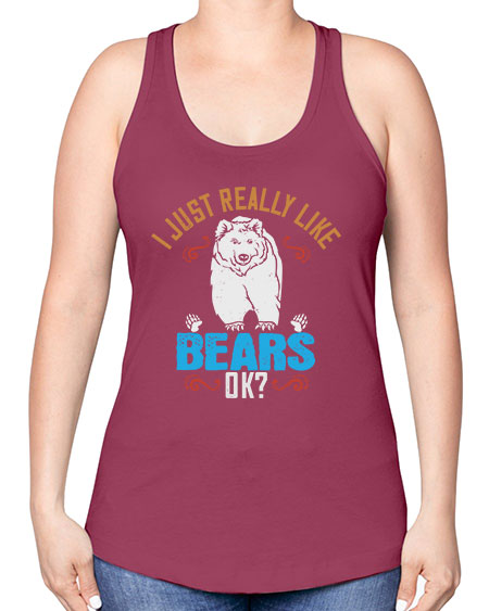 google-site-verification=jVrHOkW2AsgL_ozwUikqFQE6-Ke6U43Z8aLcUbXT5TE i just really like bears ok 137# - bears - animals -Racerback Tank – Tshirt Unlimited