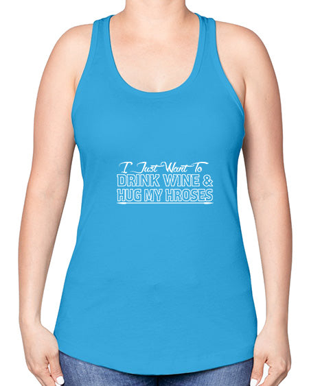 i just want to drink wine hug my hroses 1118#- wine -Racerback Tank Note: There is a 2 - 4 day creation time, which may delay shipping. Features: - 60% combed ringspun cotton/40% polyester lightweight jersey