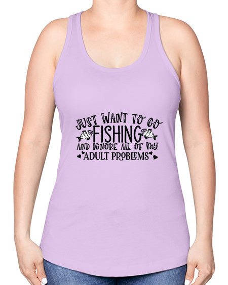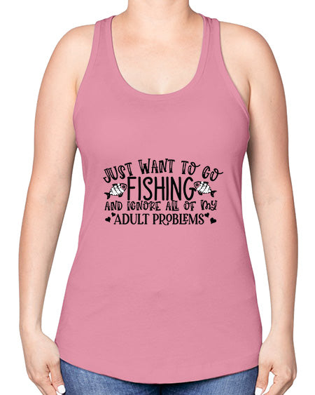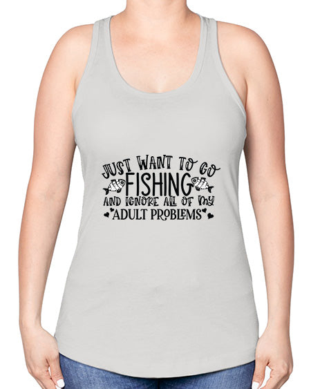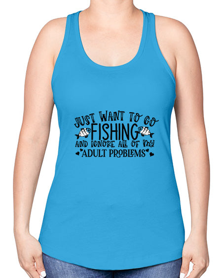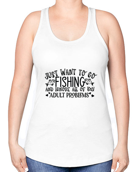 I Just Want To Go Fishing and ignore all of my adult problems 36# - funny -Racerback Tank