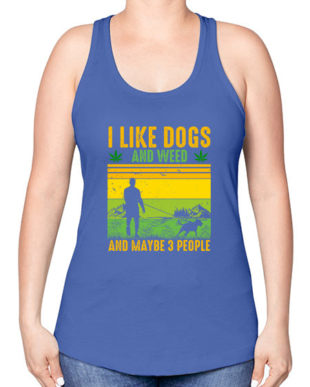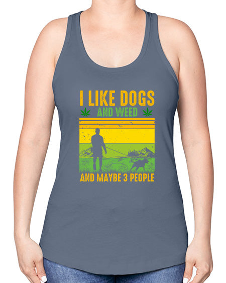 i like dogs and weed and maybe three people 570#- graphic -Racerback Tank