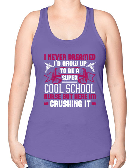 i never dreamed id grow up Style 911#- nurse -Racerback Tank Note: There is a 2 - 4 day creation time, which may delay shipping. Features: - 60% combed ringspun cotton/40% polyester lightweight jersey
