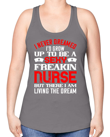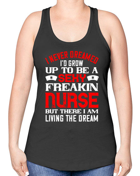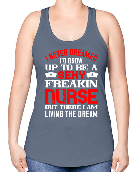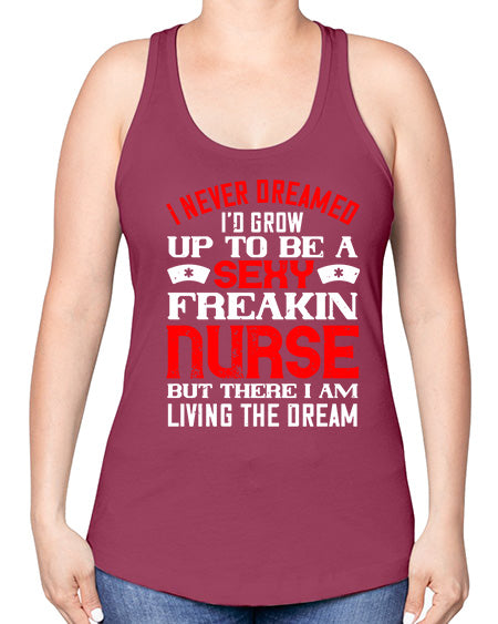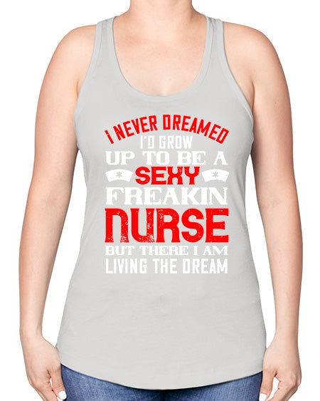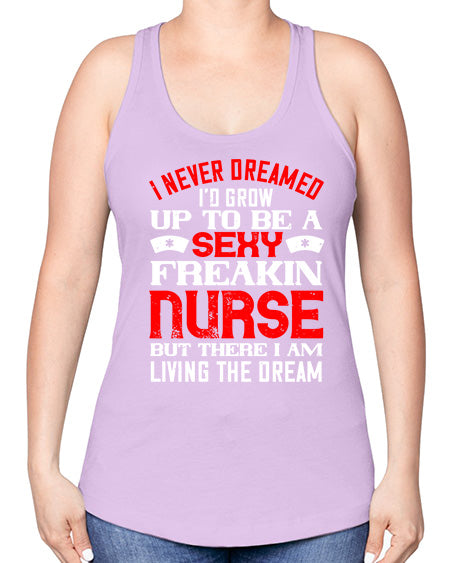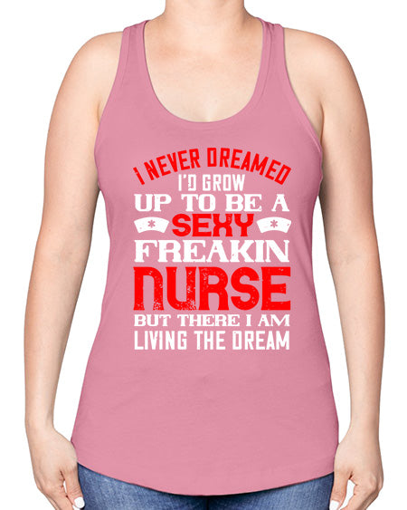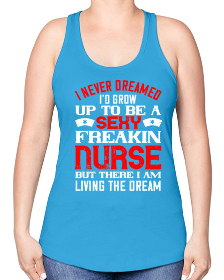 I never dreamed id grow up to be a sexy freakin nurse but there i am living the dream Style 913# - nurse -Racerback Tank