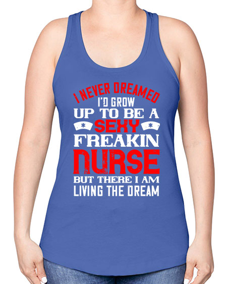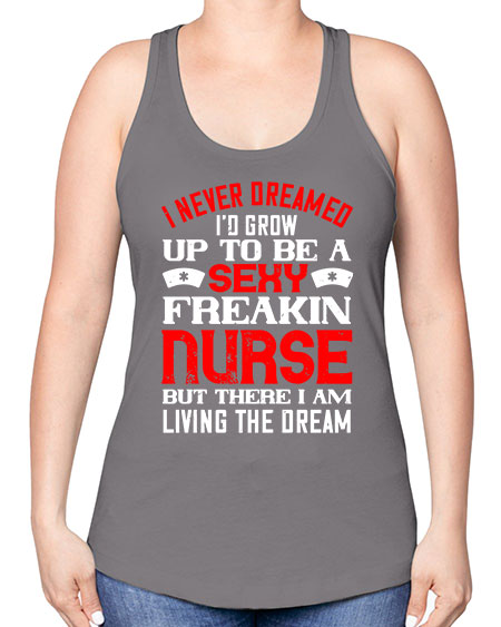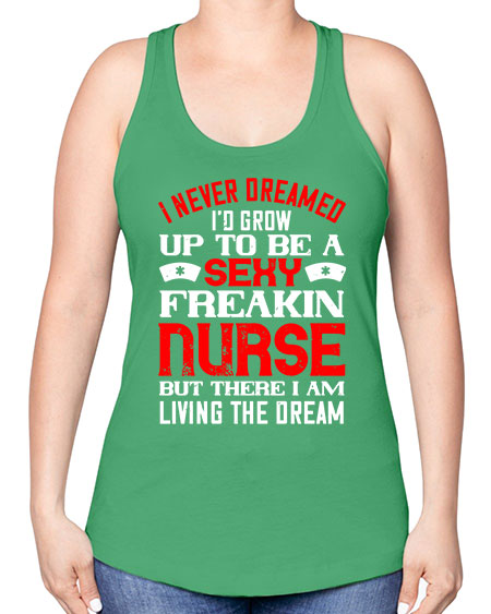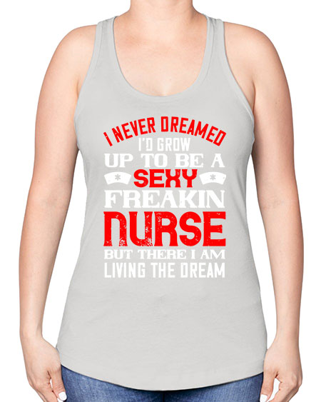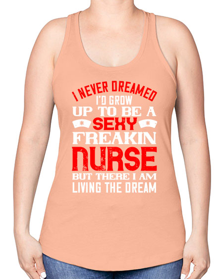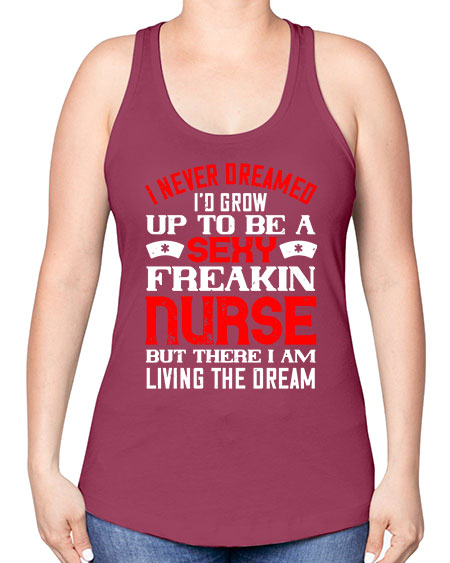 • I never dreamed id grow up to be a sexy freakin nurse but there i am living the dream Style 913#- nurse -Racerback Tank