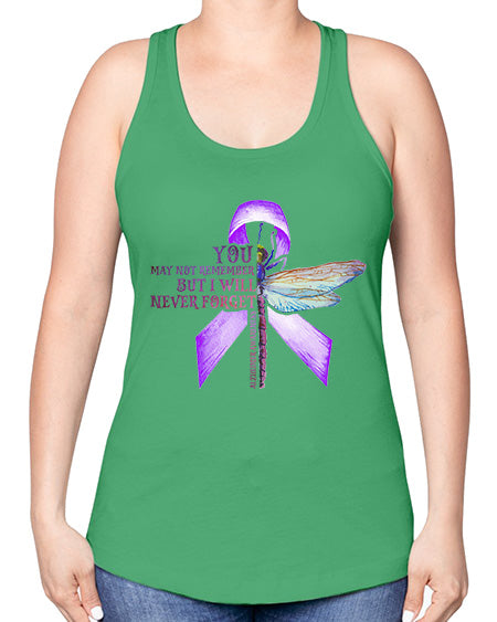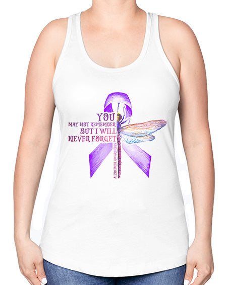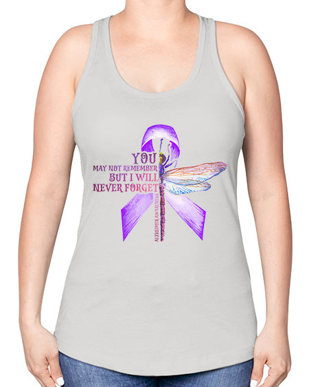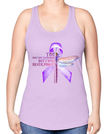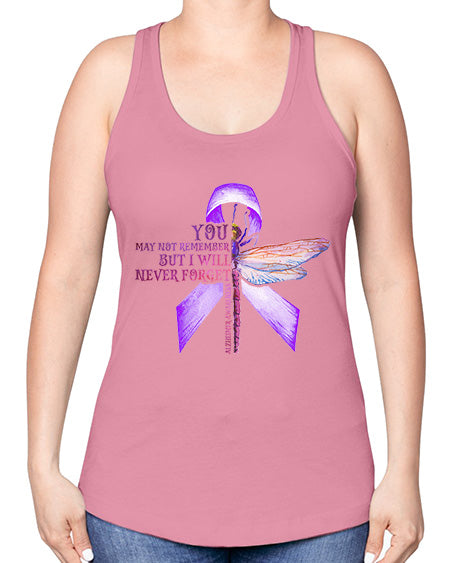 I Will Never Forge Alzheimer Awareness 179# - alzheimers -Racerback Tank