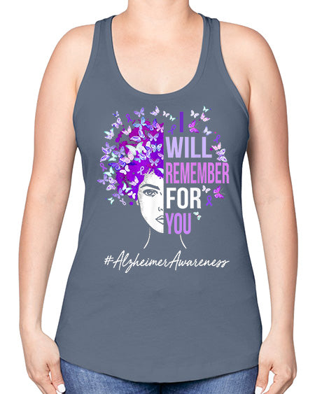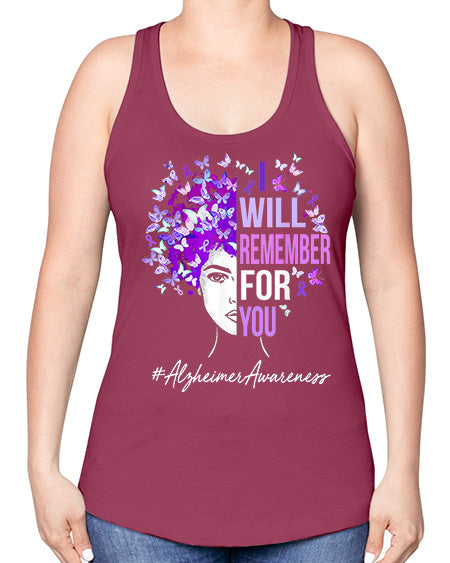 I Will Remember For You Alzheimer Awareness Womens Butterfly 180#- Sub -Racerback Tank