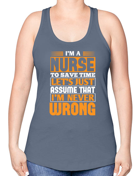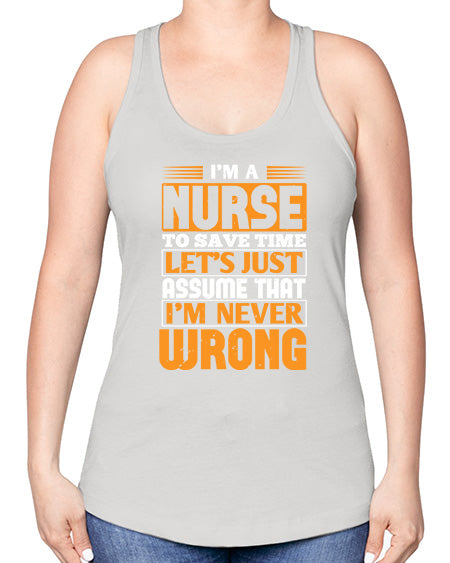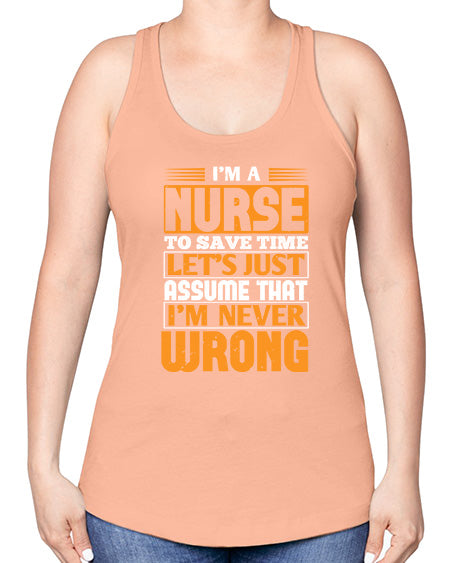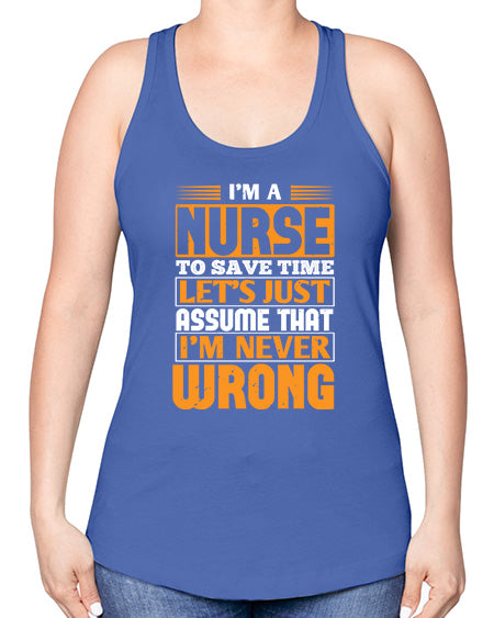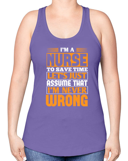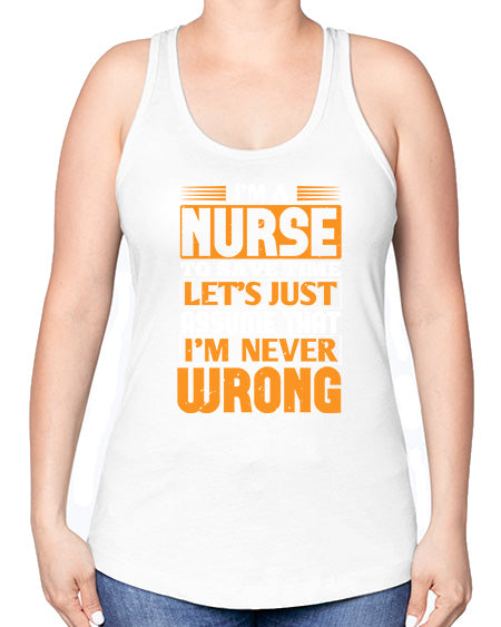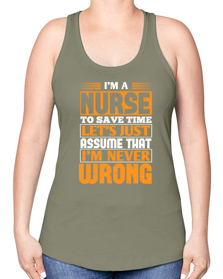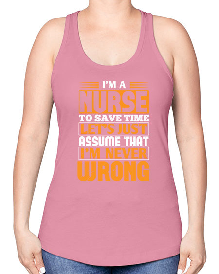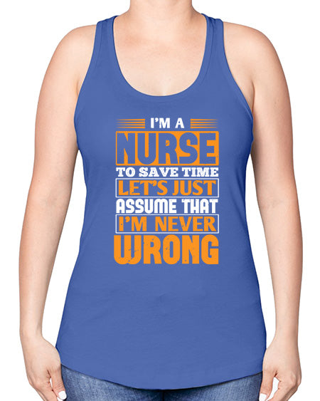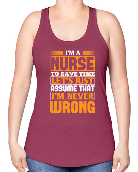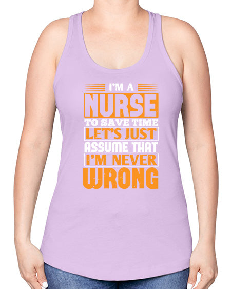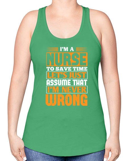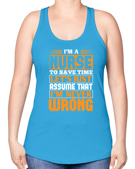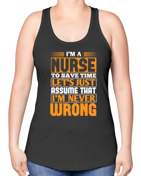 Im a nurse to save time lets just assume that im never wrong Style 1013# - nurse -Racerback Tank