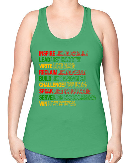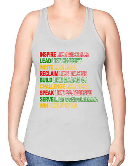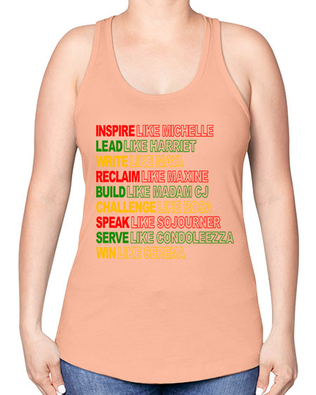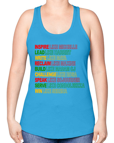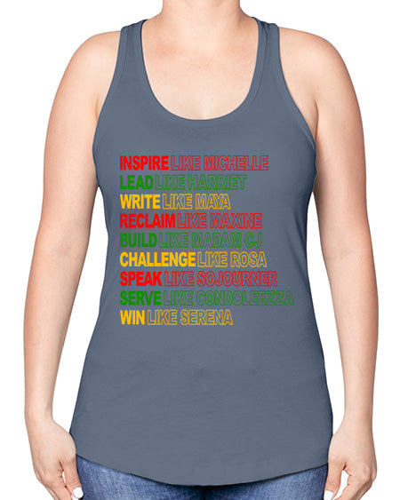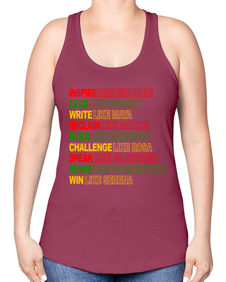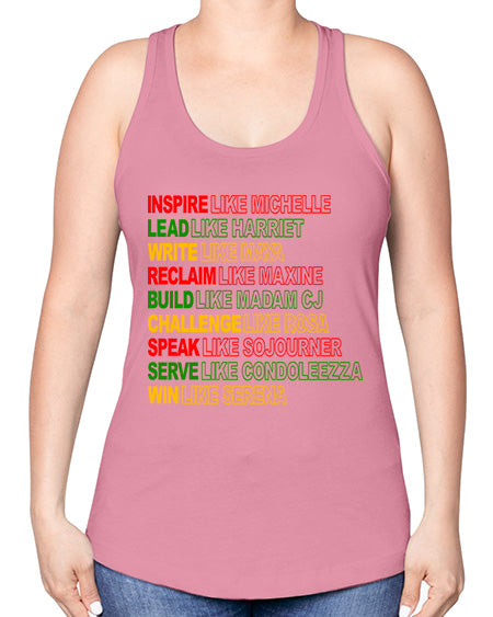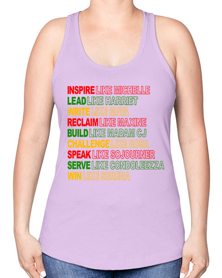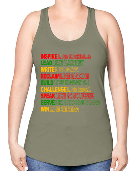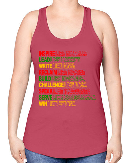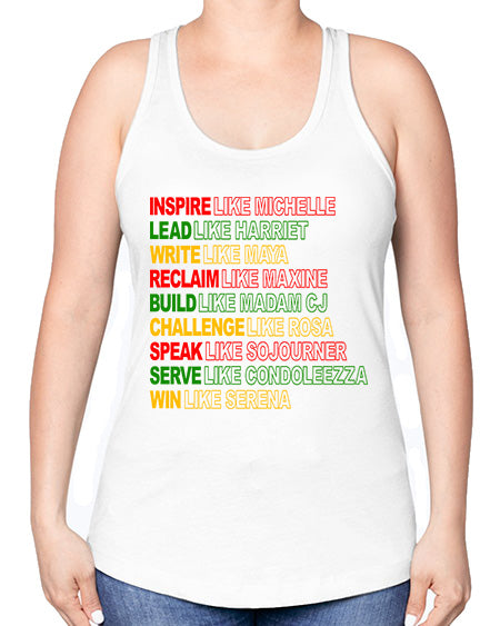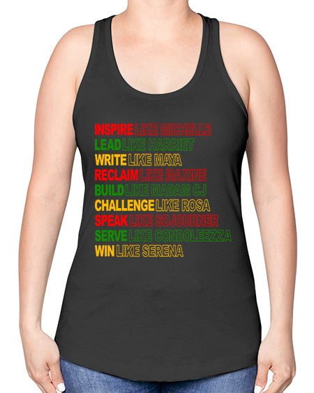 inspire like michelle 107# - black words and phrases -Racerback Tank