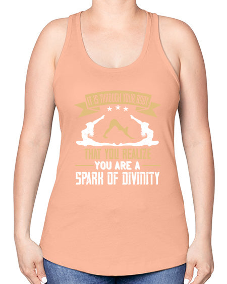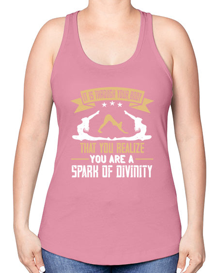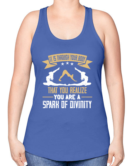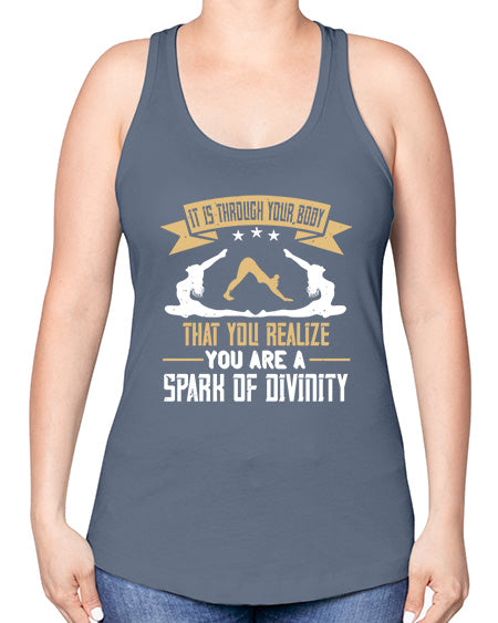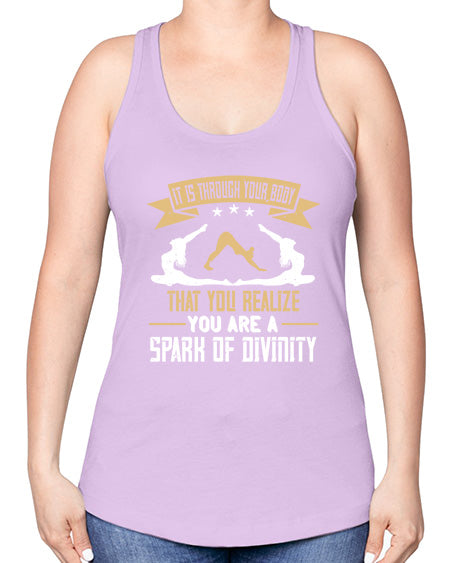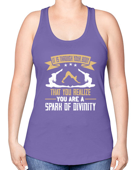 it is through your body that you realize you are a spark of divinity 343# - yoga -Racerback Tank