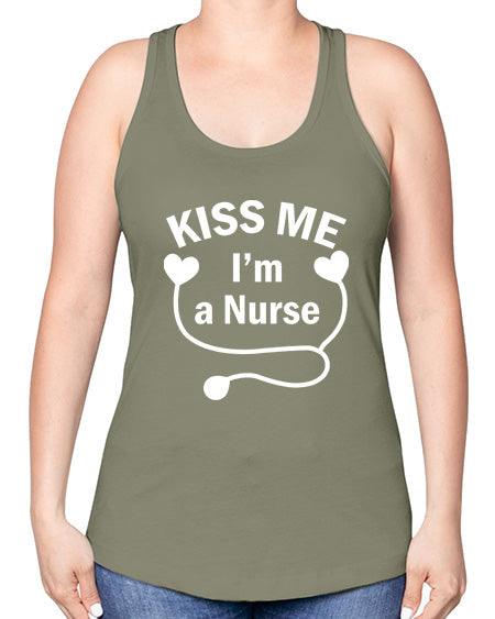 kiss me im a nurse 1034#- nurse -Racerback Tank