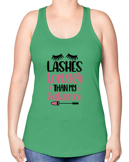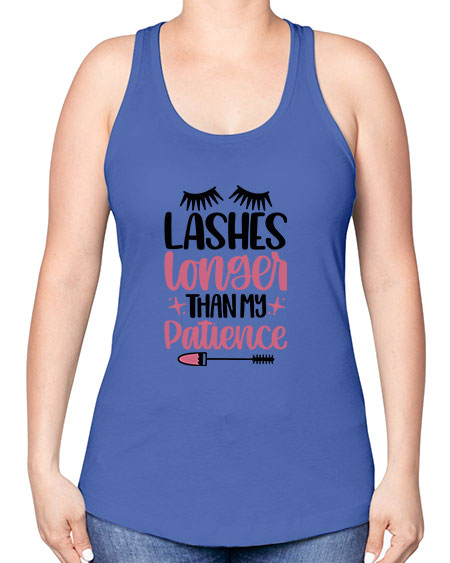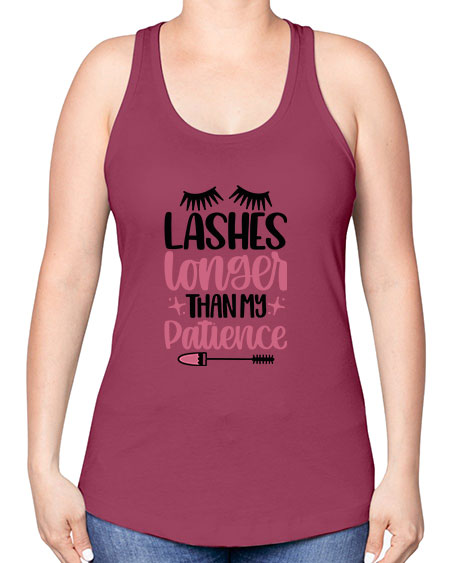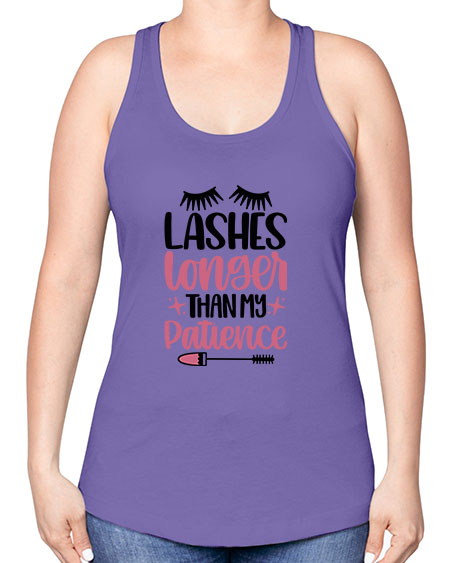 Lashes Longer Than My Patience Style 66#- beauty - fashion -Racerback Tank Note: There is a 2 - 4 day creation time, which may delay shipping. Features: - 60% combed ringspun cotton/40% polyester lightweight jersey