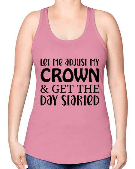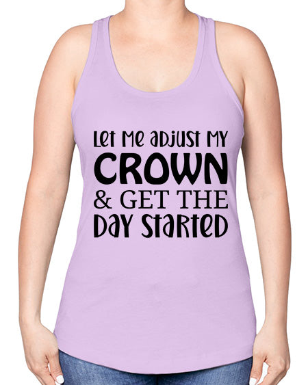 let me adjust my crown and get the day started 714#- graphic -Racerback Tank